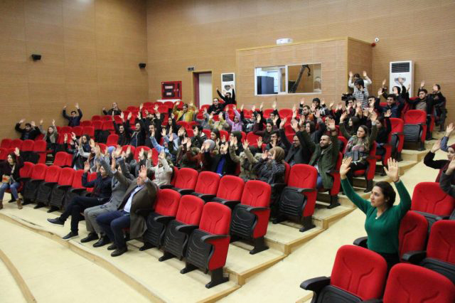 Organ bağışına destek amacıyla Ankara’ya kadar yürüyen Giresun Organ Bankası Dernek Başkanı Fırat Akyol; konferansa katılanlara empati yapmaları amacıyla bazı etkinlikler yaptırdı. Sahneye aldığı öğrencilere yaptırdığı çalışma ile uzuvların ne kadar önemli olduğunu ve bu uzuvların eksikliği halinde insan yaşamını ne kadar zor olduğuna ve etkilerine dikkat çekti.