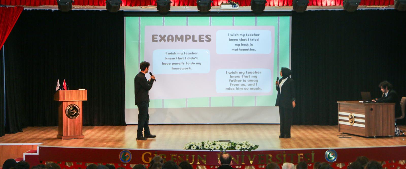 Şehit Ömer Halisdemir konferans salonunda Rektör Yardımcımız ve Dekanımız Prof. Dr. Güven Özdem, Dekan Yardımcısı Prof. Dr. Hasan Hüseyin Aksu, Eğitim Fakültesi öğretim üyeleri ve Fen- Edebiyat Fakültesi öğretim üyeleri katılımları ile gerçekleşen faaliyette İngilizce Öğretmenliği Programı öğrencileri “GRÜ’de öğrenci olmak”, “çeşitli kültürlere duyarlı öğretmenlik anlayışı”, “kapsayıcı eğitim”, “müfredat ve ders planı tasarımı”, “teknoloji İle zenginleştirilmiş dil öğretimi” konularına ilişkin model etkinlikler tasarladı.