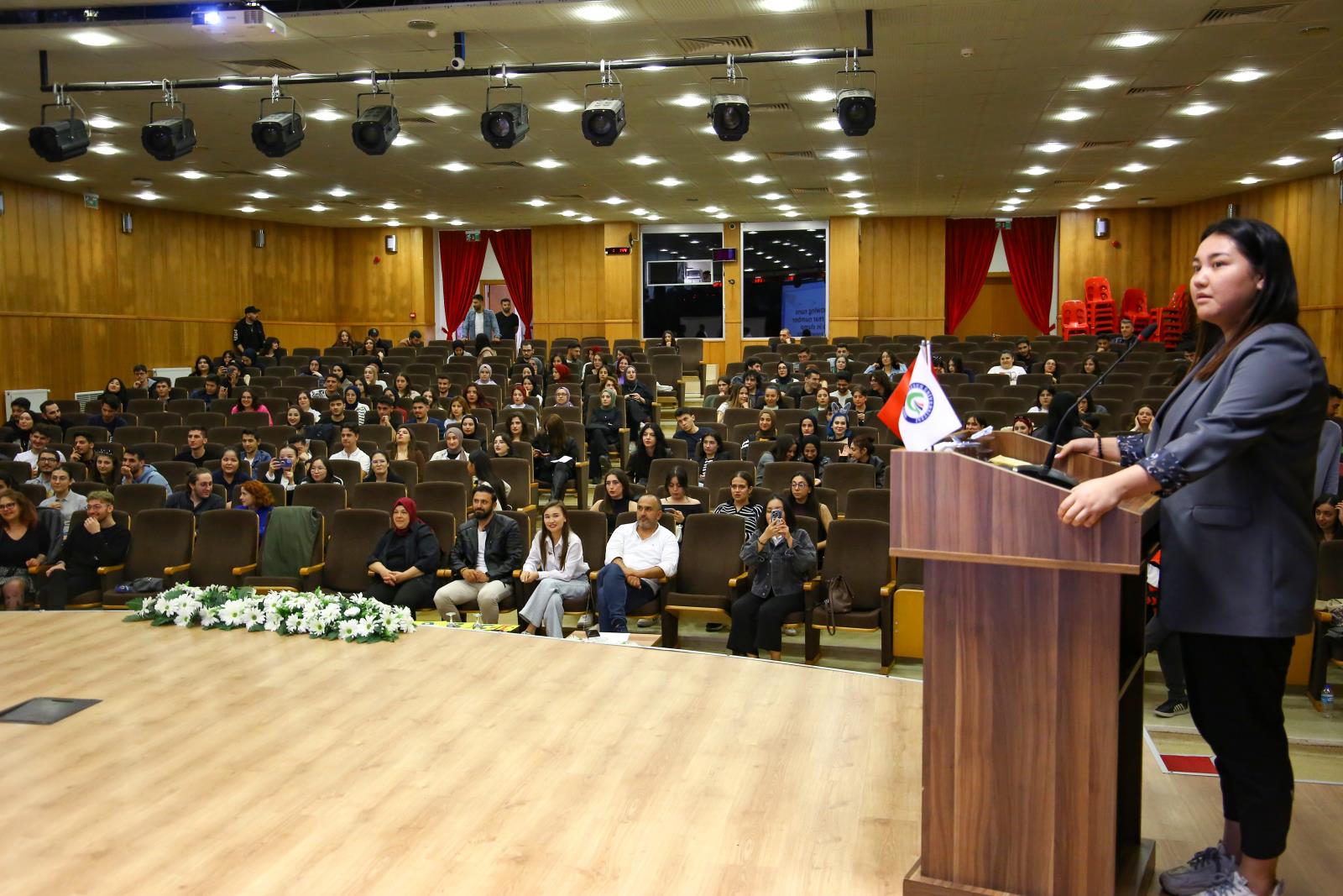 Konuşmasında Cumhuriyetin 100. Yıldönümüne vurgu yapan Prof. Dr. Beyhan KESİK, Gazi Mustafa Kemal ATATÜRK'ün "Cumhuriyet sizden fikri hür, vicdanı hür, irfanı hür nesiller ister” sözüne de atıfta bulunarak öğrencilere tavsiyelerde bulundu. İngiliz Dili ve Edebiyatı Bölümü akademisyenlerine ve öğrencilerine organizasyon için teşekkür eden Sayın KESİK, öğrencilere, sadece mesleki alanları ile ilgili değil, farklı alanlarda yapılacak etkinliklere de yönelmelerinin kendilerini geliştirmeleri bakımından önemli olduğunu ifade etti.