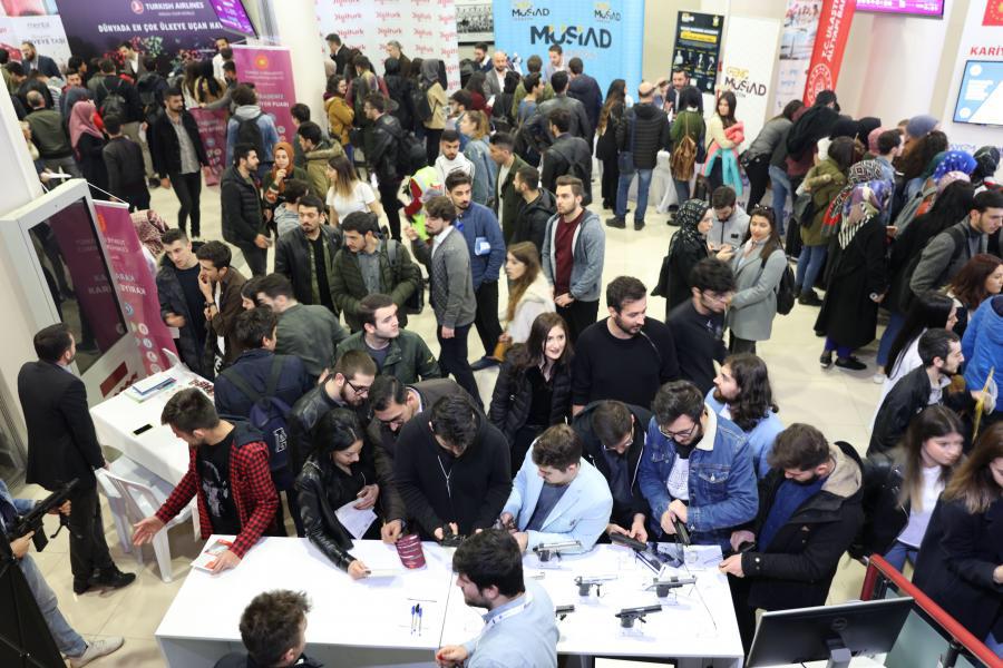 Üniversitemiz Kariyer Yönlendirme ve Bilgilendirme Merkezi (KAYBİMER) Müdür Yardımcısı Öğr. Gör. Oktay Orçun Beken ve Dr. Öğr. Üyesi Kenan Yanmaz eşliğinde fuara katılan Mühendislik Fakültesi ve Turizm MYO son sınıf öğrencileri, ulusal ve uluslararası düzeyde 150’ye yakın kamu kurumu ve özel sektör temsilcisiyle bir araya gelme imkânı buldular.