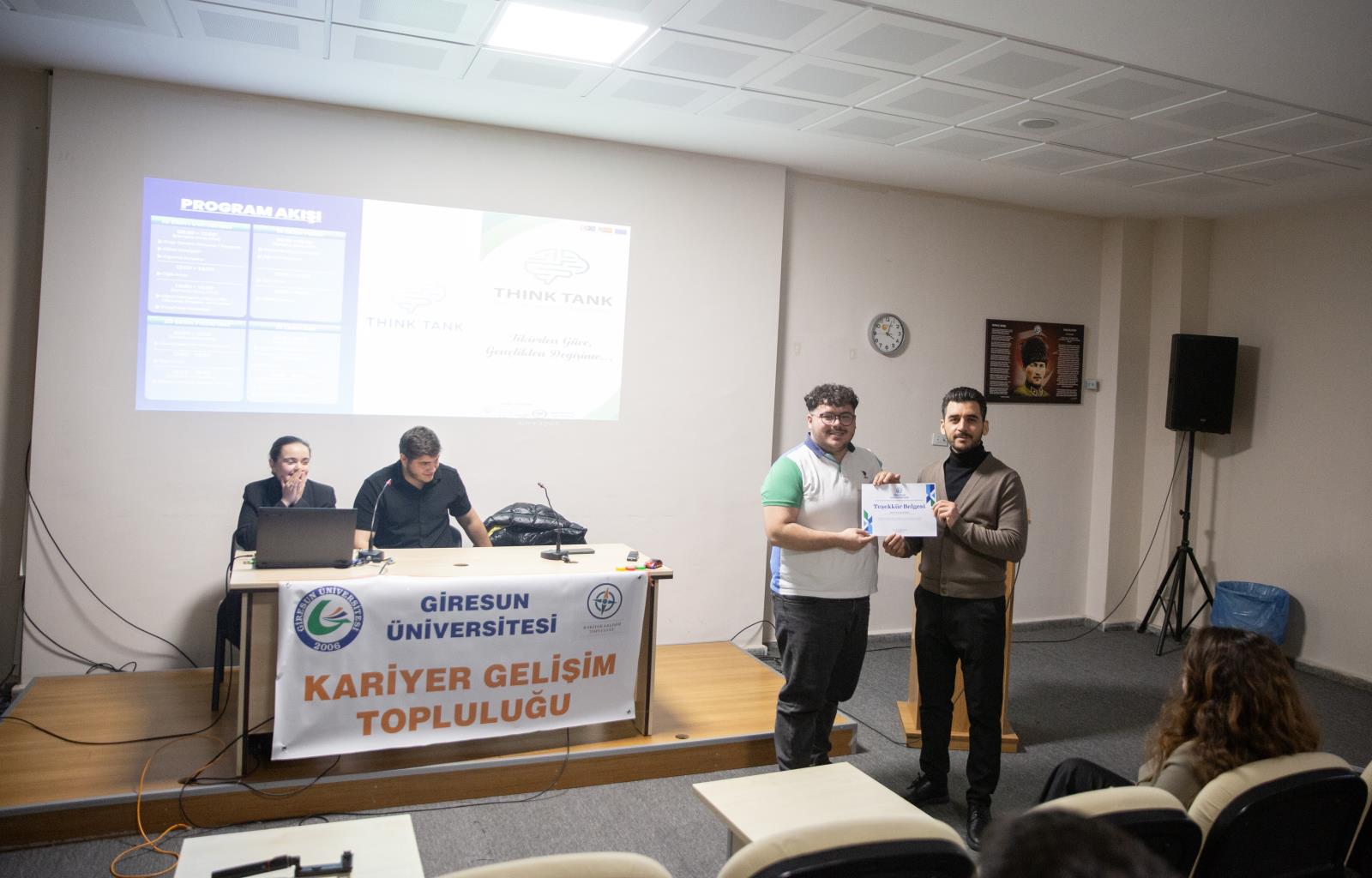Giresun Üniversitesi Kariyer Gelişim Topluluğu, öğrencilerin kariyer farkındalığını artırmaya ve girişimcilik ekosistemine yönelik bilinç kazandırmaya yönelik etkinliklerine önümüzdeki süreçte de devam edeceğini belirtti.