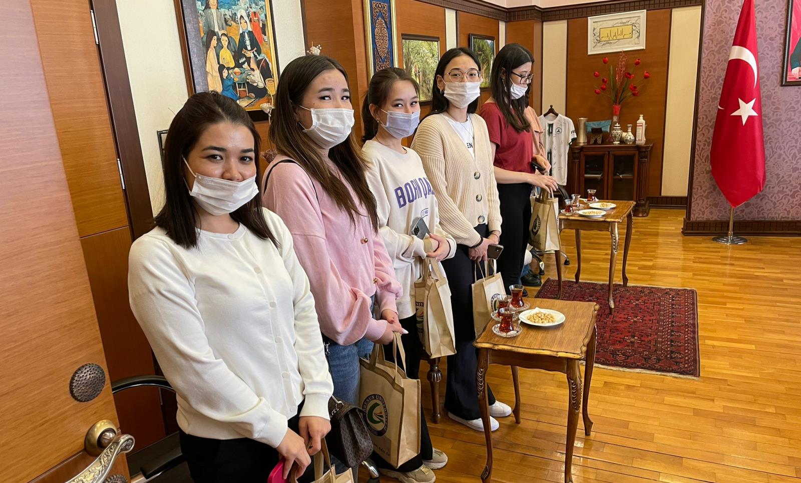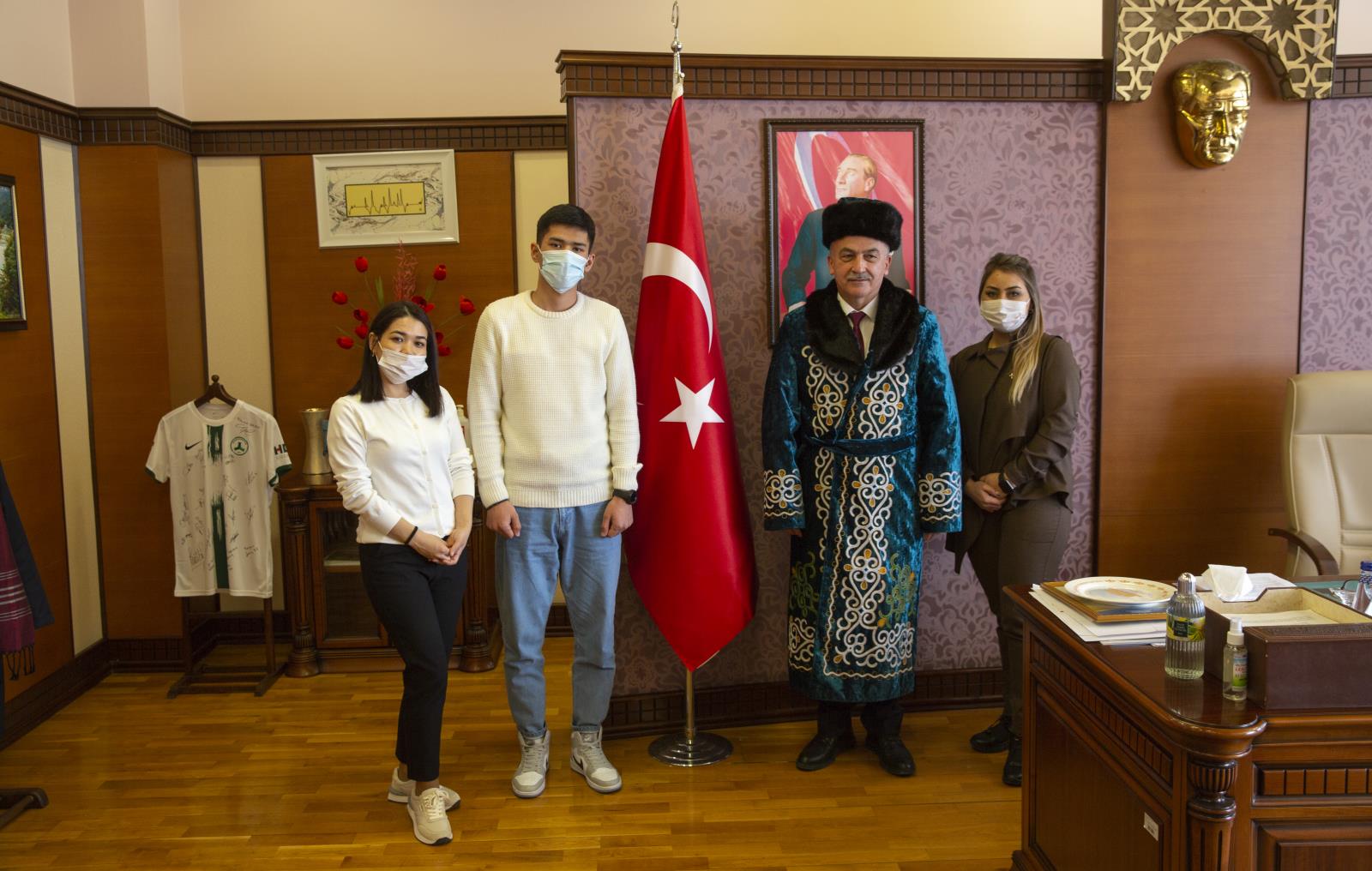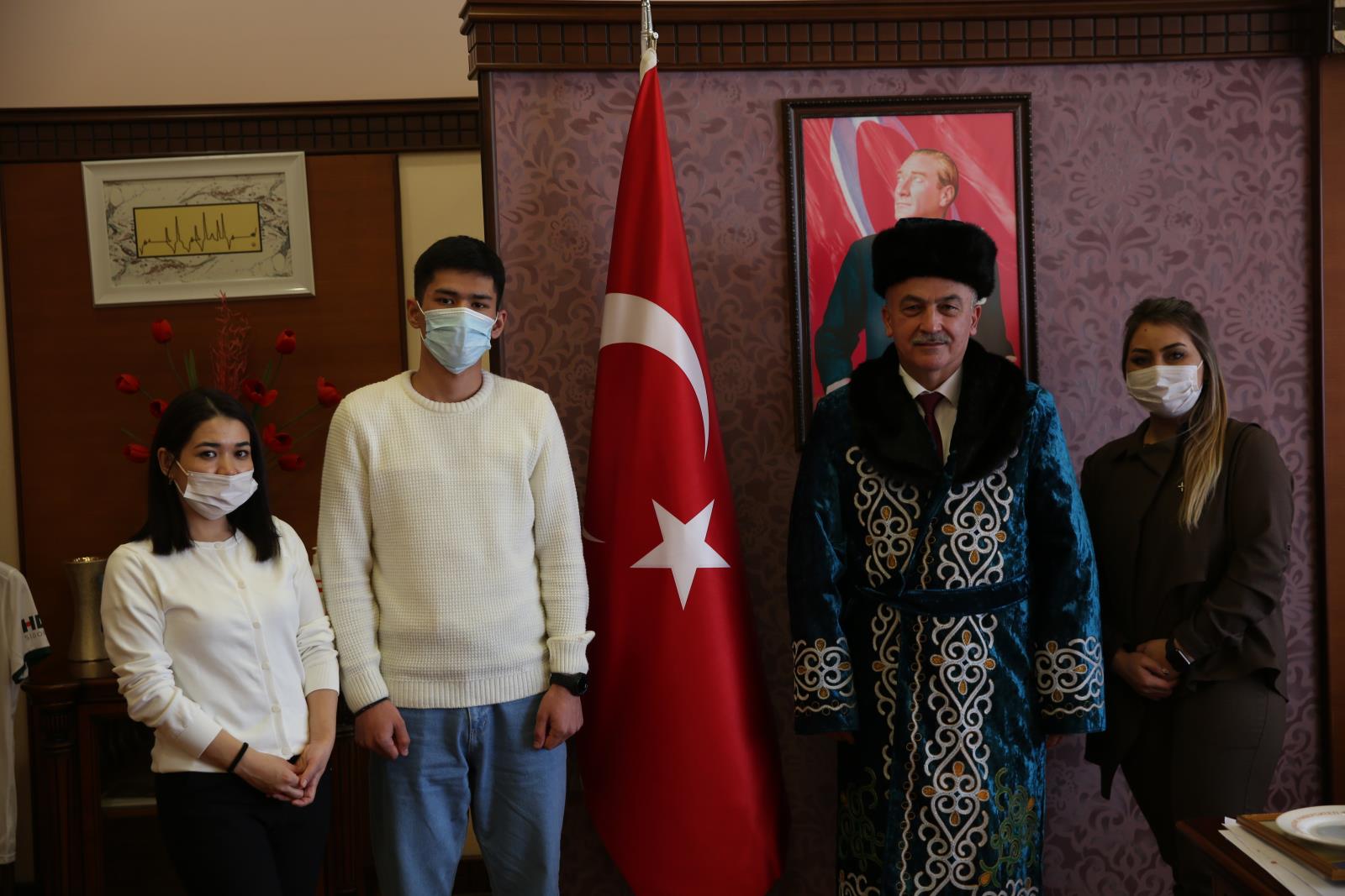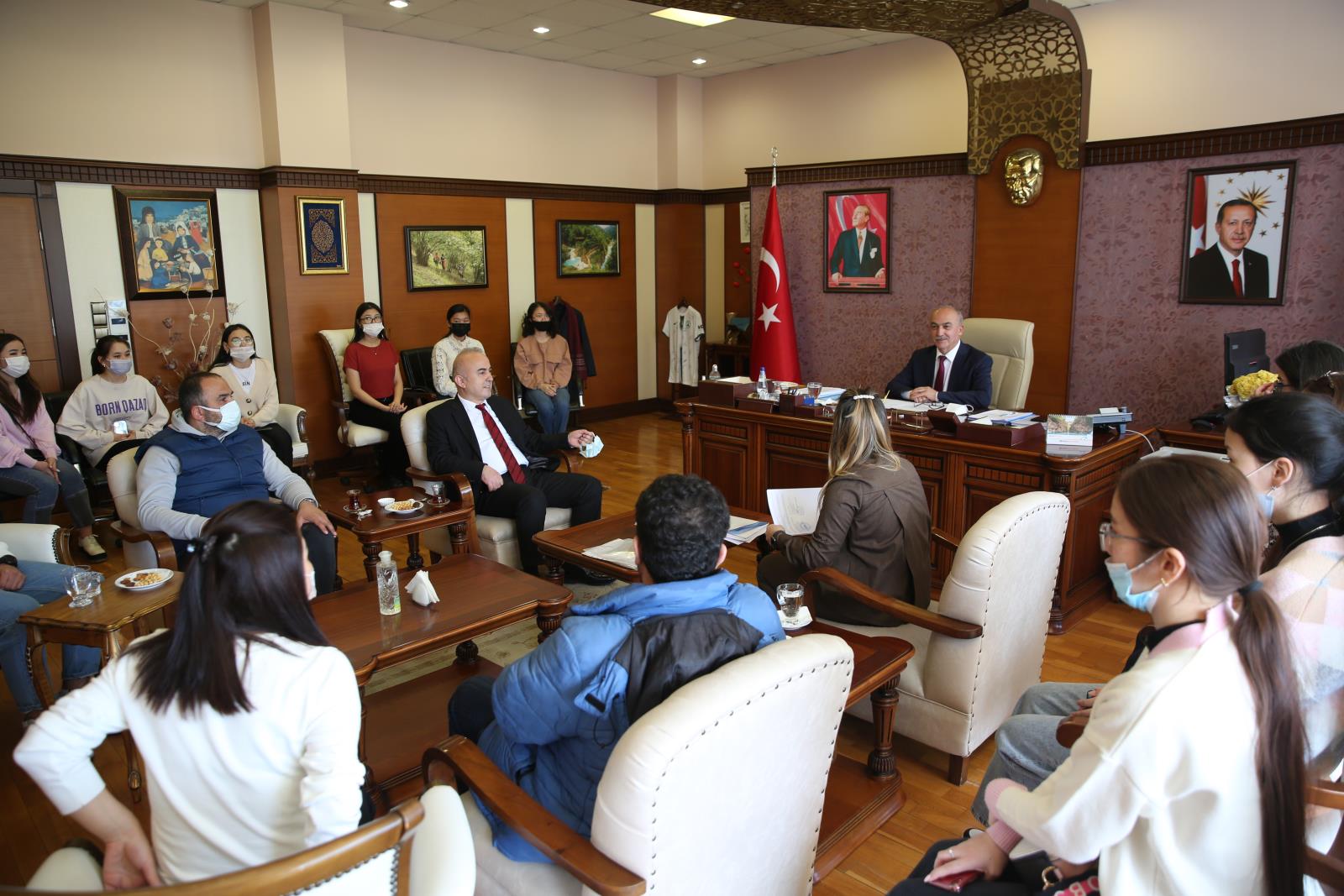 Fen-Edebiyat Fakültesi Dekanı Prof. Dr. Beyhan Kesik ve Abai Kazak Milli Pedagoji Üniversitesi Dış İlişkiler Ofisi Müdürü Dr. Dinara Ashimova ile birlikte Rektörümüzü ziyaret eden öğrenciler, Tükiye'de ve Giresun Üniversitesinde olmaktan duydukları memnuniyeti dile getirdiler.