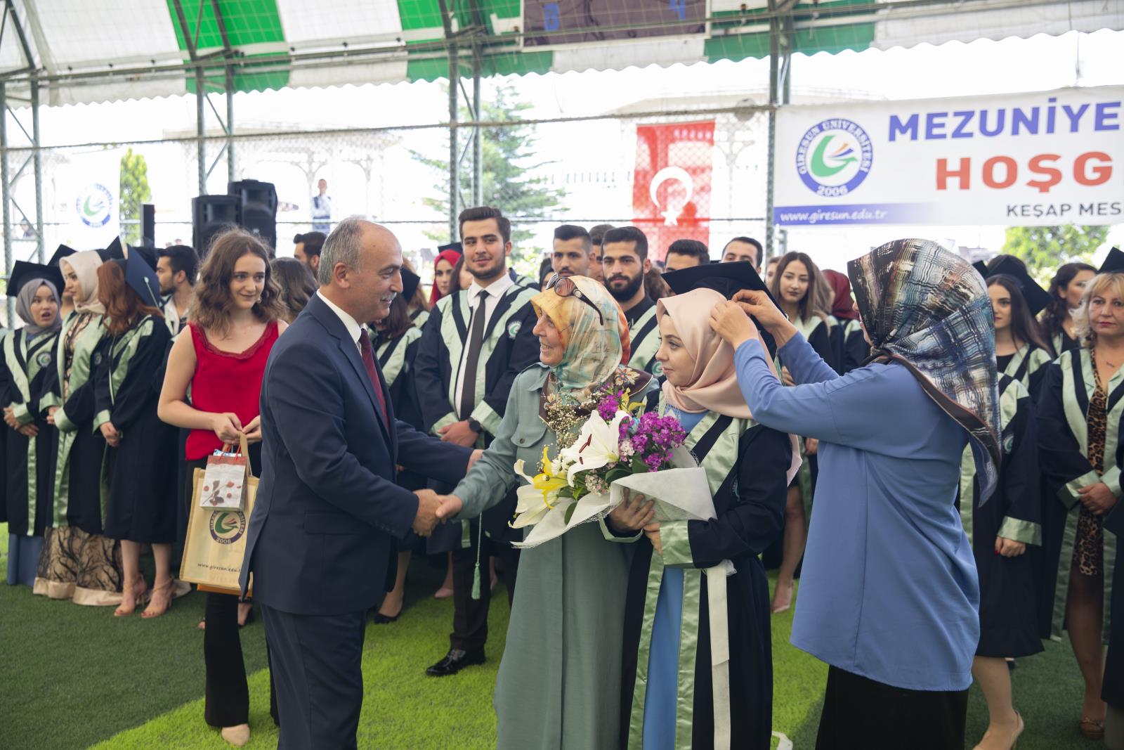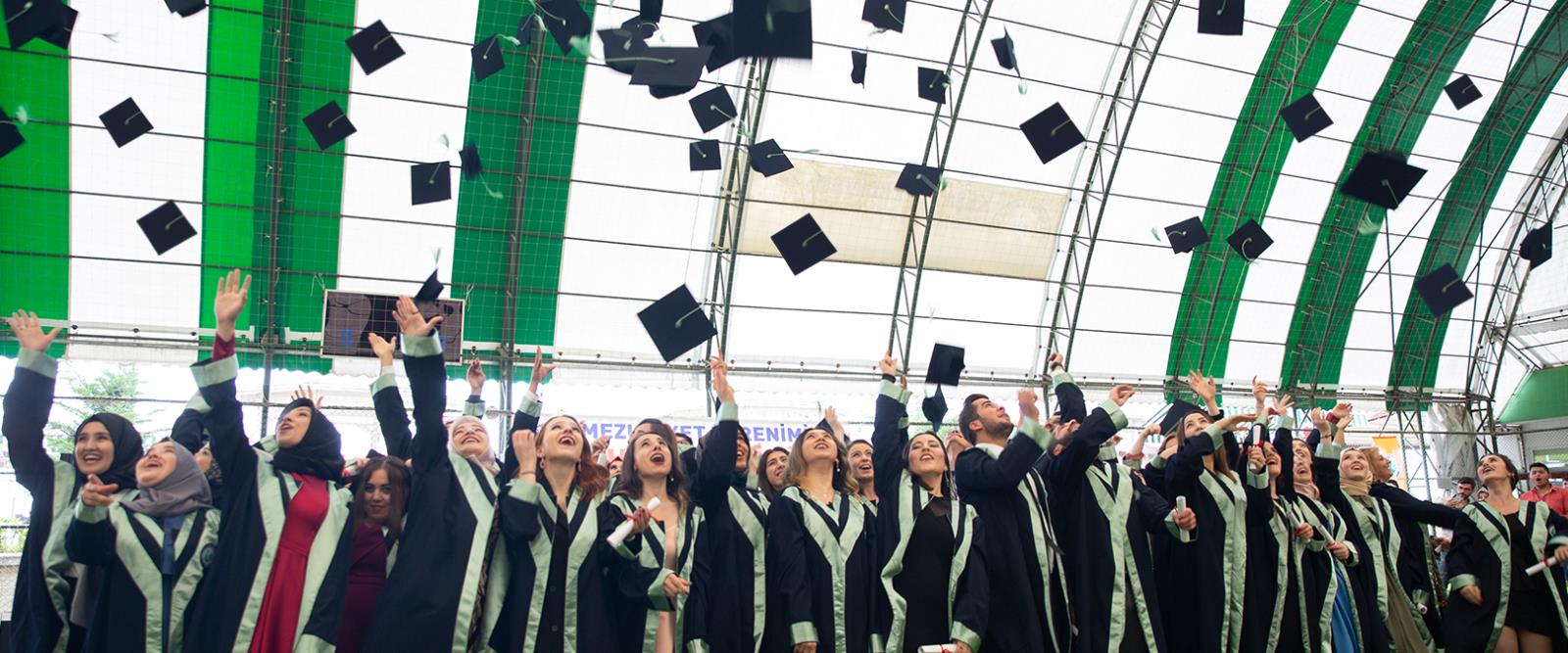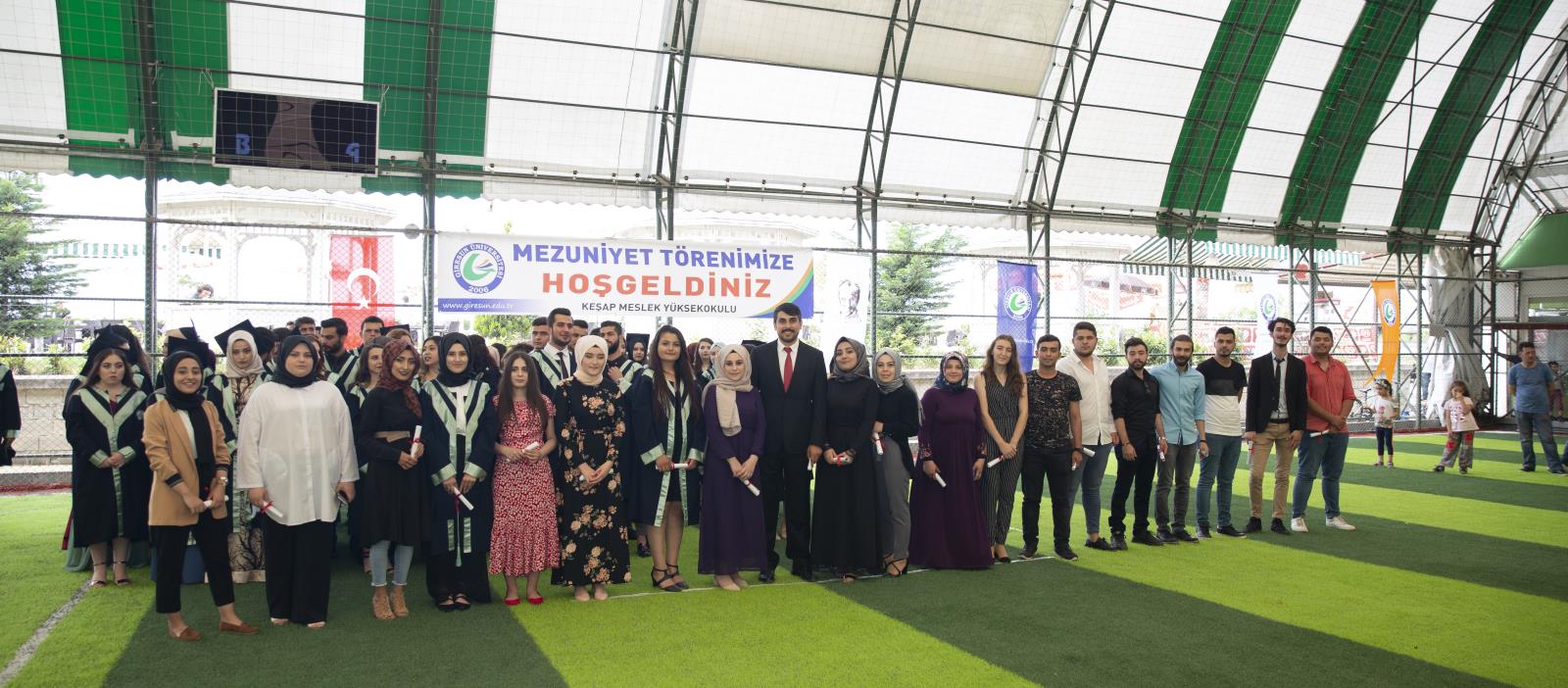 Keşap Meslek Yüksekokulu mezuniyet töreni, mezun öğrencilerin hep birlikte kep atmalarıyla sona erdi.