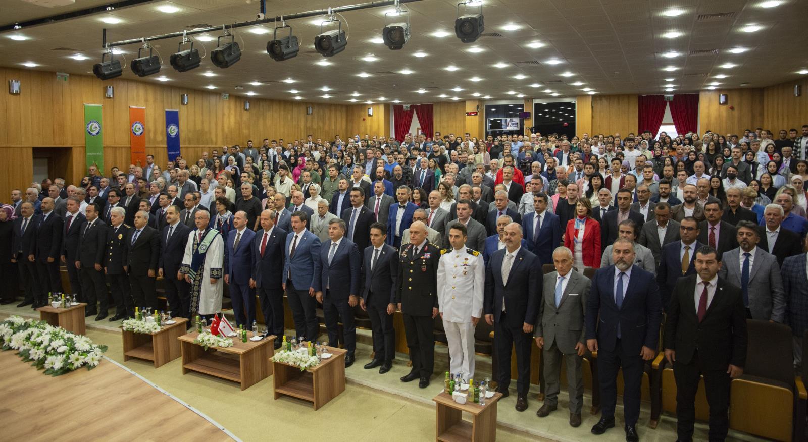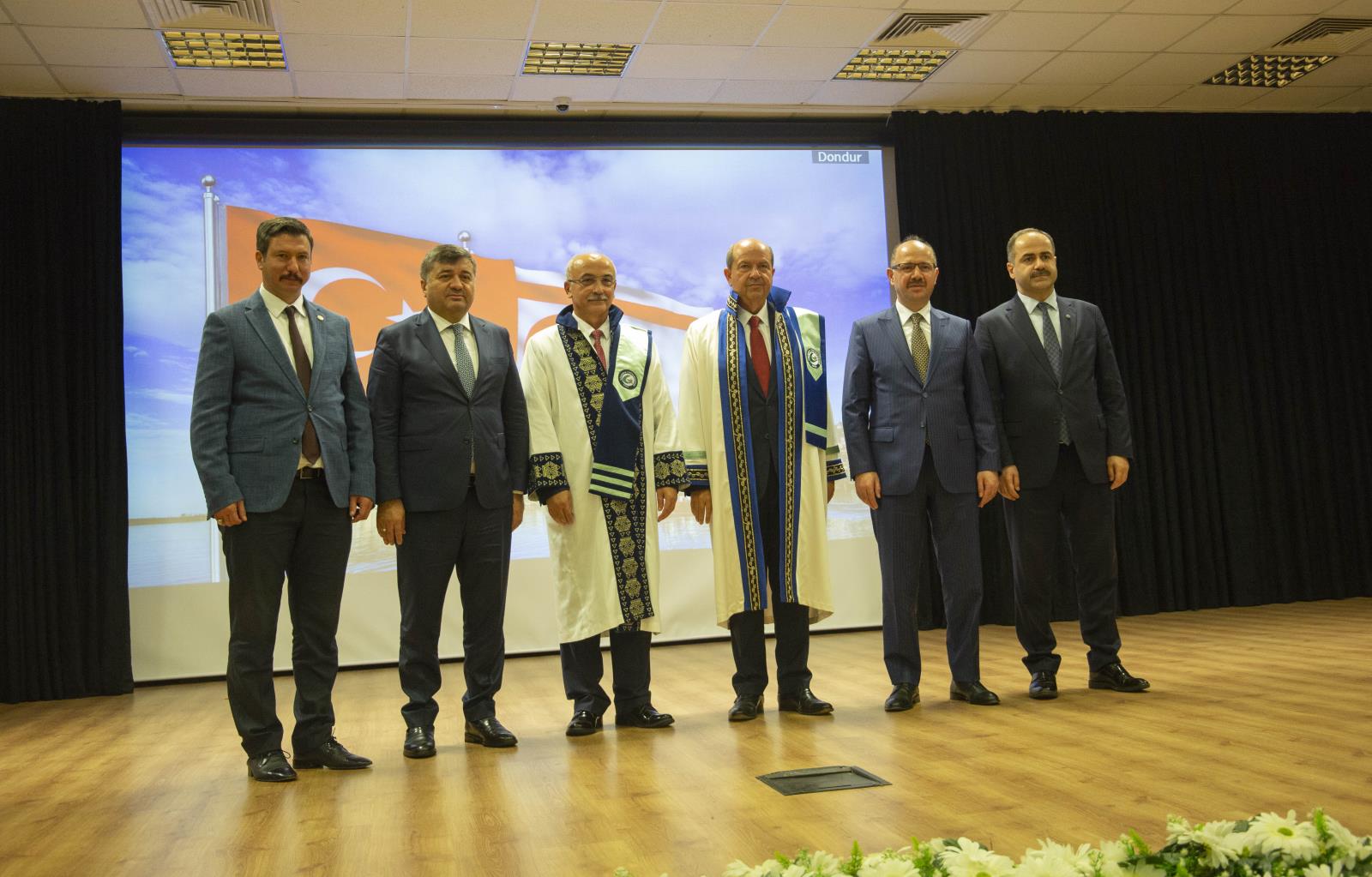 Rektörlük binası önünde Rektörümüz Prof. Dr. Yılmaz Can ve Rektör Yardımcılarımız Prof. Dr. Güven Özdem ile Prof. Dr. Hüseyin Şahin tarafından karşılanan Cumhurbaşkanı Ersin Tatar, diploma tevcih töreninin ardından, Şehit Ömer Halisdemir Konferans Salonunda "KKTC'nin Türk Dünyası İçerisindeki Stratejik Önemi" konulu bir konferans verdi.