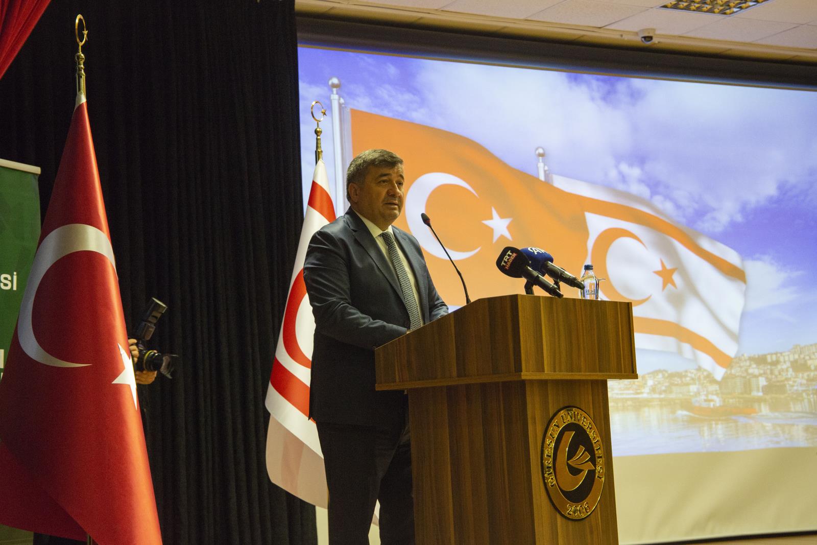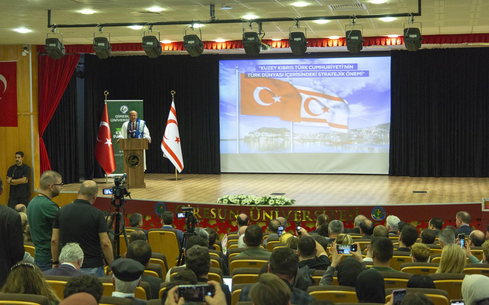 Rektörümüzün ardından kürsüye gelen Giresun Belediye Başkanı Aytekin Şenlikoğlu da, Cumhurbaşkanı Ersin Tatar'ı Giresun'da ağırlamaktan onur duyduklarını dile getirerek, Giresun halkının her zaman Kıbrıs Türklerinin haklı davasının arkasında durduklarını dile getirdi.