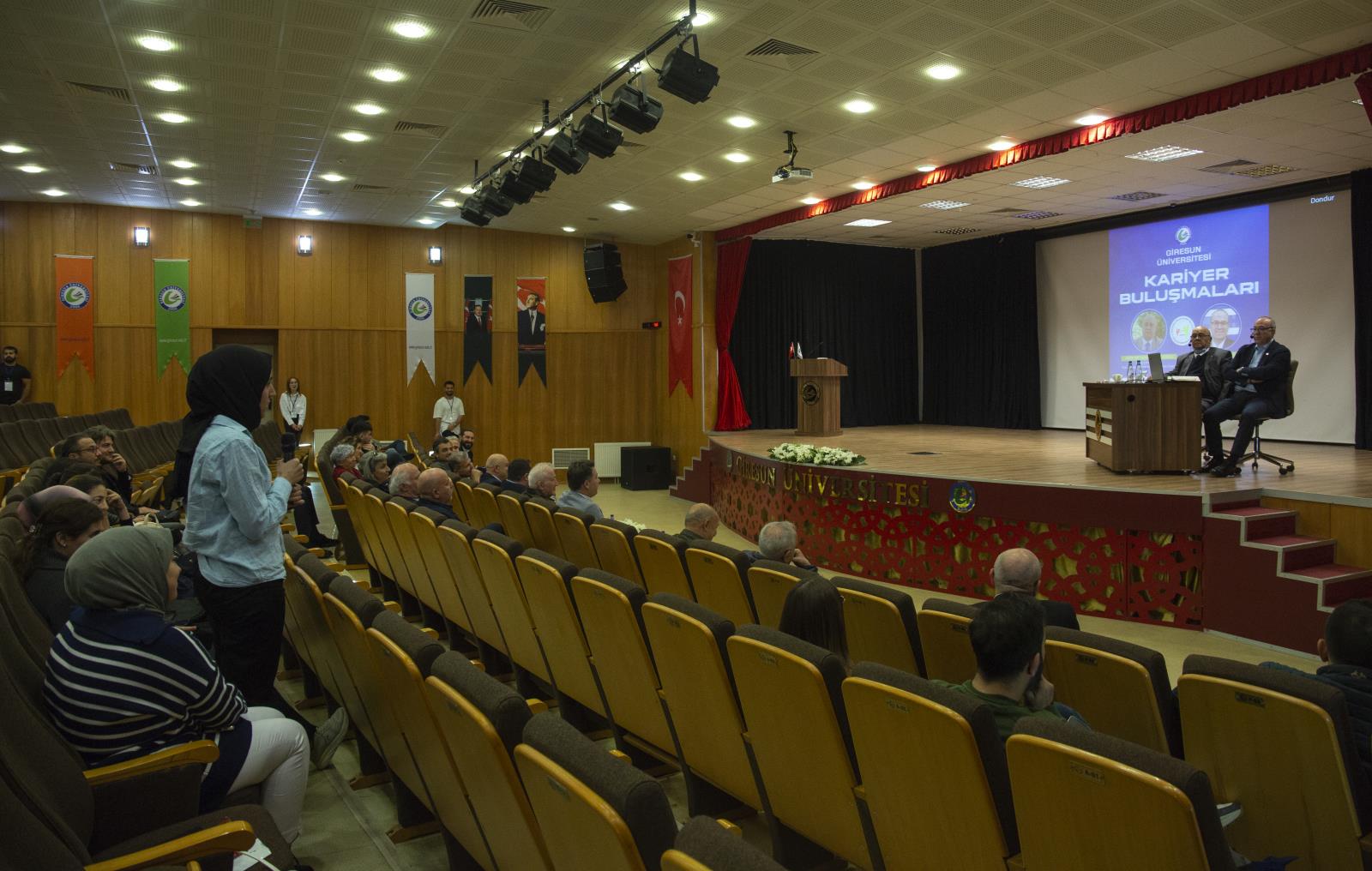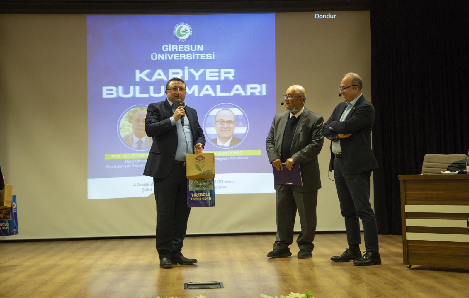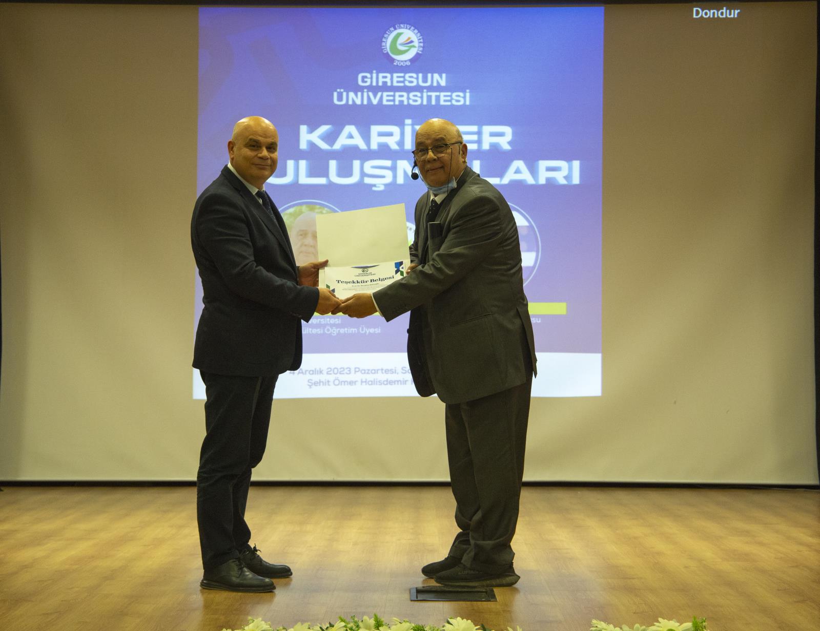 Prof. Dr. Balcıoğlu, küçük bir şehirden çıkıp iyi bir kariyer oluşturmak için yapılması gerekenlerden eğitim hayatında yaşadığı zorlukların üstesinden nasıl geldiğinde, mesleki yaşantısında edindiği deneyimlerden Giresun için pek çok çalışmanın içerisinde bulunduğuna kadar geniş bir yelpazede öğrencilerle bilgiler paylaştı.