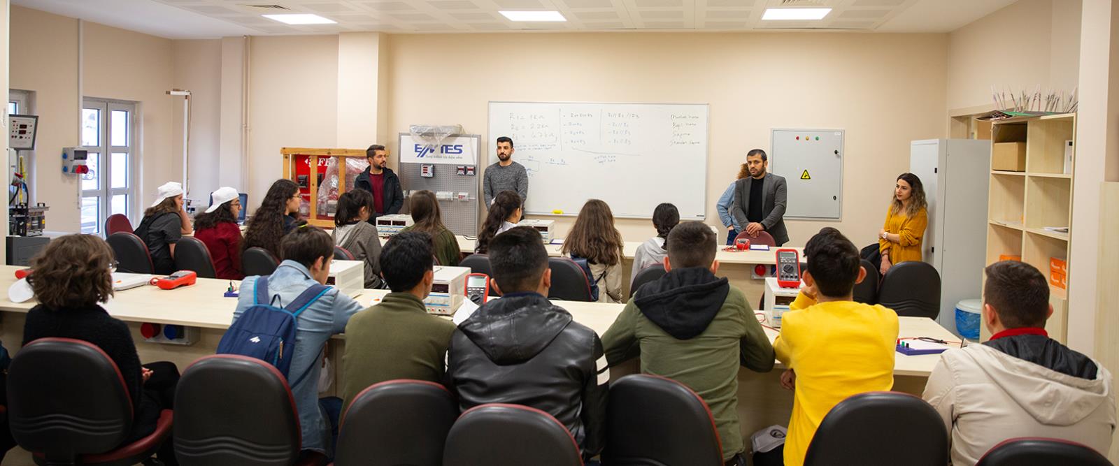 Okul öğretmenleri eşliğinde Üniversitemize gelen öğrencilerin, meslek seçimlerine ve kariyer planlarına yol göstermesi amacıyla düzenlenen gezi, Üniversitemiz Basın Koordinatörlüğü çalışanlarından Mehmet Söylemez ve Ömer Karataş tarafından yapılan genel bilgilendirmenin ardından Mühendislik fakültesiyle başladı.