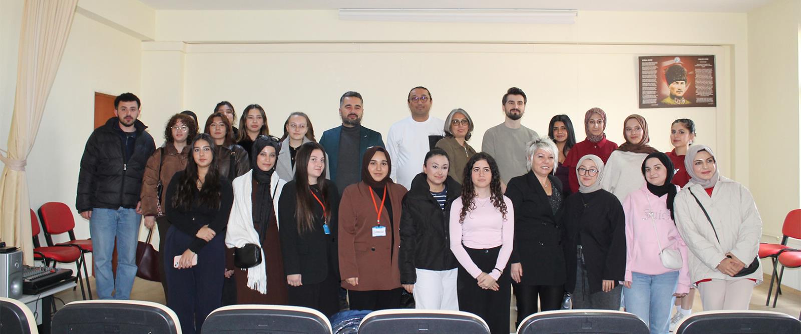 Meslek Yüksekokulu Sektörel İş Birliği Komisyonu üyeleri Dr. Öğr. Üyesi Sevilay Kılınçarslan, Öğr. Gör. Emre Güneş ve Öğr. Gör. Esma Betül Akılmak tarafından organize edilen öğrenci–sektör buluşmasında moderatörlüğü, Pazarlama ve Reklamcılık Bölüm Başkanı Öğr. Gör. Aykut Göktekin ile Tıbbi Hizmetler ve Teknikler Bölüm Başkanı Öğr. Gör. Dr. Mustafa Gültepe üstlendi.