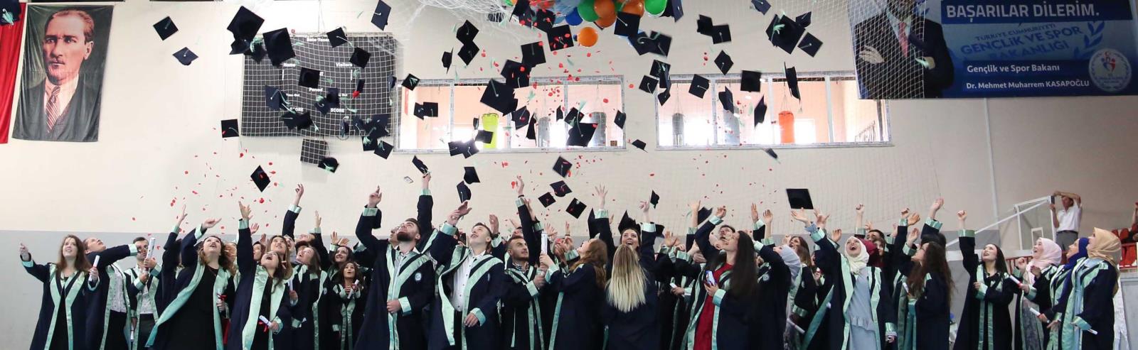 Konuşmaların ardından dereceye giren öğrencilere teşekkür plaketi ve hediyelerin takdim edilmesiyle devam eden mezuniyet programı, kep töreniyle sona erdi.