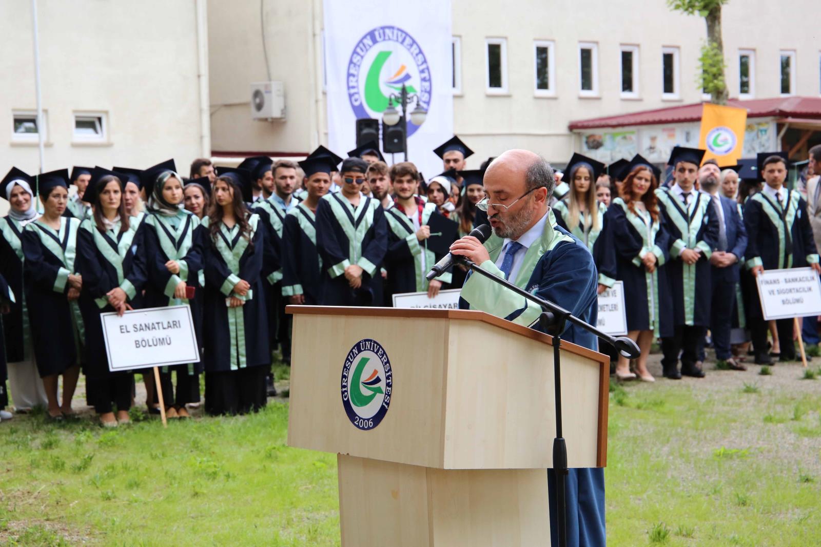 Okul birincisi Feyza Nur Ceylan’ın mezun öğrenciler adına yaptığı konuşmasının ardından Yüksekokul Müdürü Doç. Dr. Hüseyin Şahin de kısa bir tebrik konuşması yaptı. Espiye Kaymakam Vekili ve aynı zamanda Görele Kaymakamı Erdoğan Turan Ermiş’in mezun öğrencileri tebrik ettiği konuşmasıyla devam eden programda daha sonra Rektörümüz Prof. Dr. Yılmaz Can kürsüye çıktı.