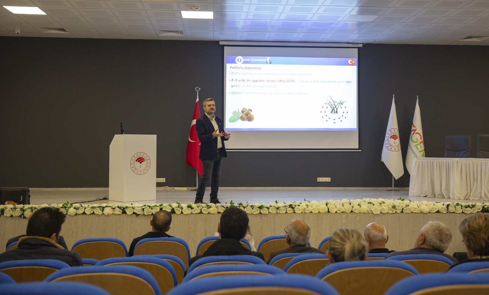 Eğitim üçüncü gününde Ordu Üniversitesi Ziraat Fakültesi Bahçe Bitkileri Bölümü Öğretim Üyesi Prof. Dr. Ali İslam “Fındıkta Budama Teknikleri” konu başlığıyla fındık doğru budamanın nasıl olması gerektiği ve doğru budamanın ürün verimine nasıl etki ettiğiyle ilgili bir sunum gerçekleştirdi.