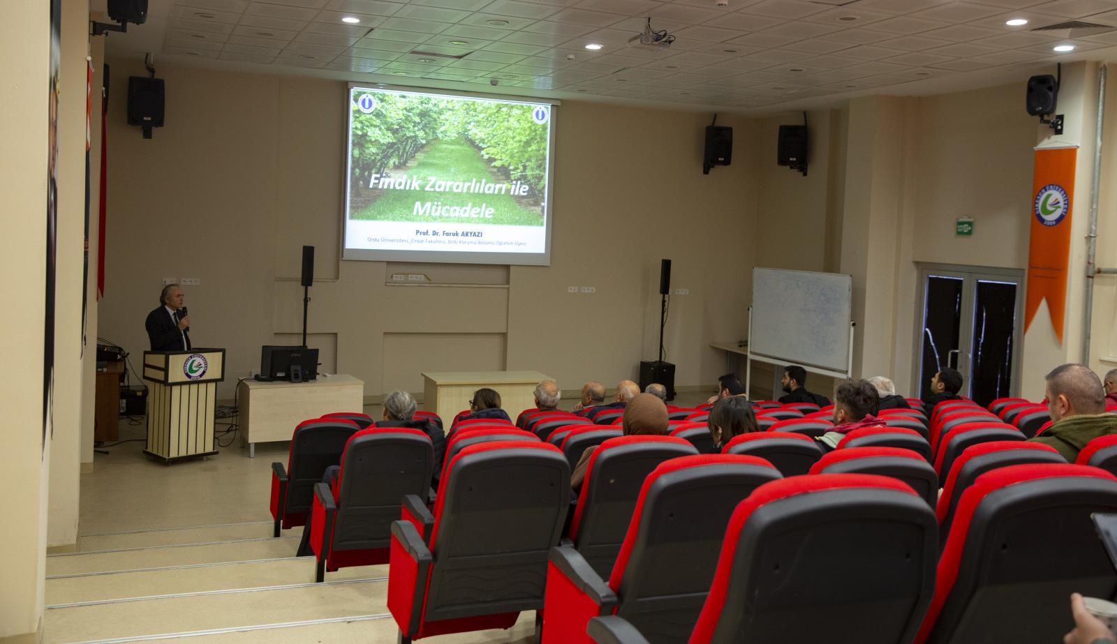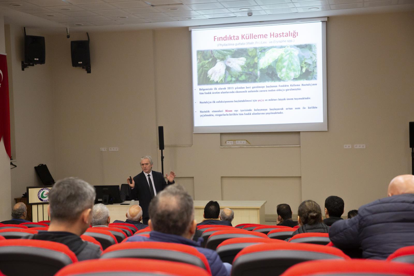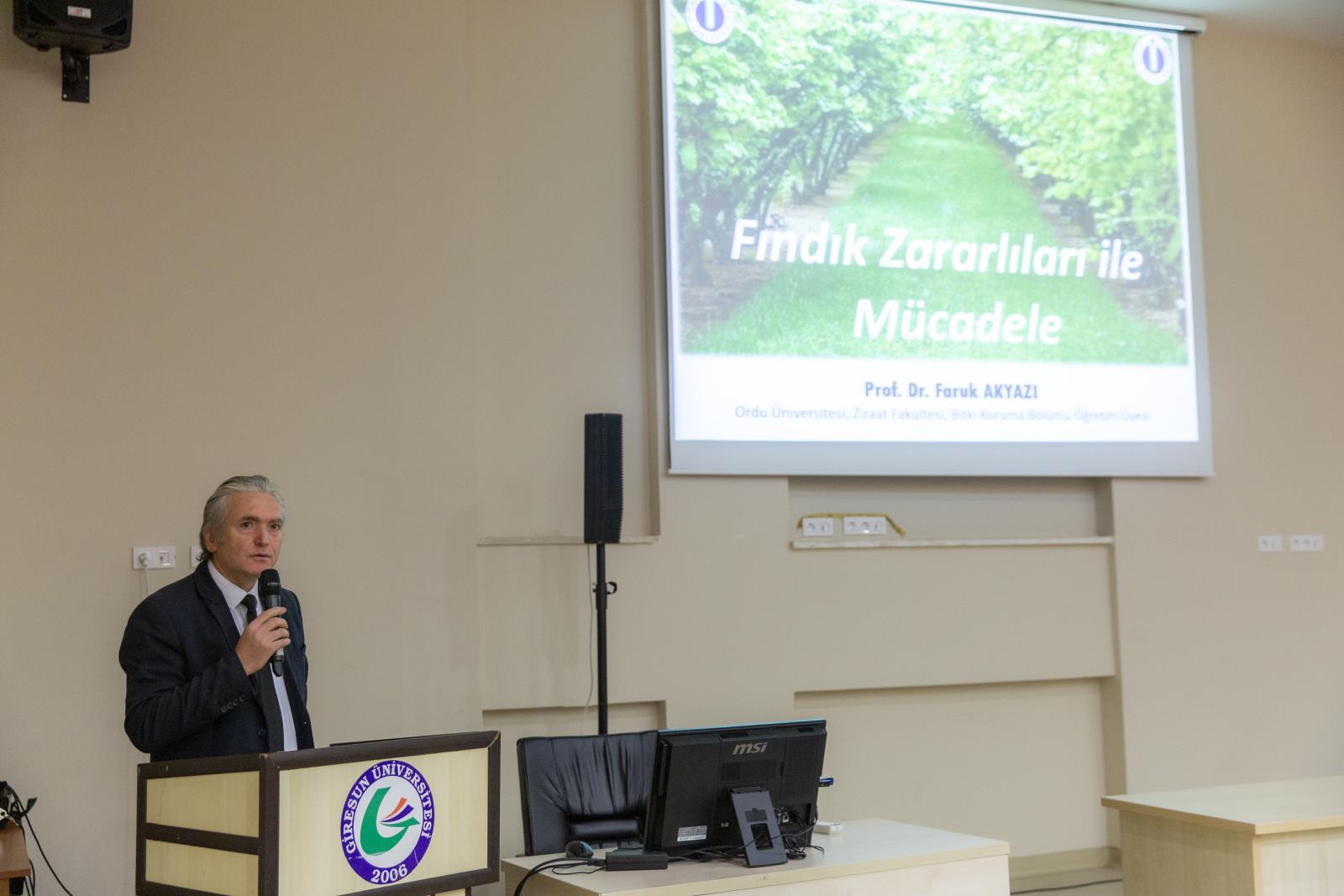 Eğitimin ikinci gününde ise Ordu Üniversitesi Ziraat Fakültesi Bitki Koruma Bölümü Öğretim Üyesi Prof. Dr. Faruk Akyazı, “Fındıkta Zirai Mücadele Yöntemleri” başlığıyla son dönemde özellikle bölgemizde başta fındık olmak üzere diğer meyve ve sebze türlerinde de yoğun zarar meydana getiren kahverengi kokarca ve fındıkta diğer ana hastalık ve zararlılar ile mücadele yöntemlerinin inceliklerini anlattı.