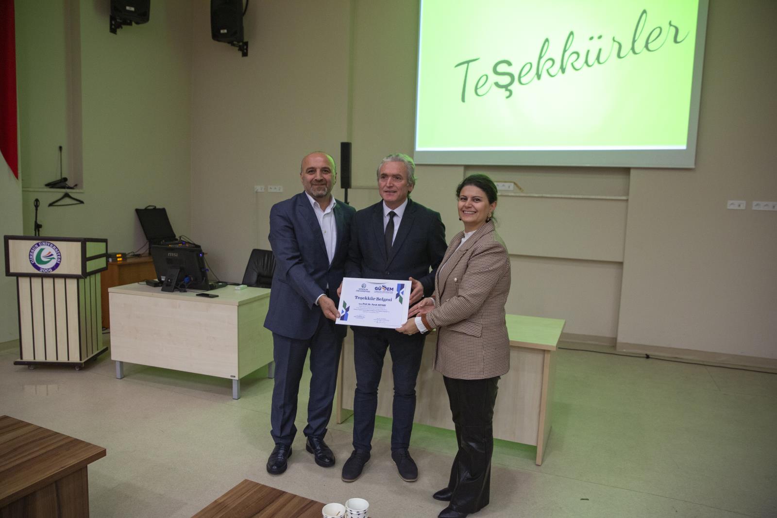 Sertifika töreninde konuşan Rektörümüz Prof. Dr. Yılmaz Can, Üniversitemizin Kasım 2021’de Fındık İhtisas Üniversitesi ilan edildiğini ve bu tarihten sonra kurulan Fındık İhtisaslaşma Koordinatörlüğü ile çeşitli çiftçi eğitimleri düzenlendiğini vurguladı. Rektör Can, “Ülkemizde önce Giresun’da sonra ise fındık tarımının yapıldığı diğer illerde bilinçli fındık yetiştiriciliği çalışmaları yapıyoruz ve yapmayı planlıyoruz. Bu sertifika programının da düzenlenme amacı tam olarak buydu. Bu bir temel eğitim, önce temel eğitim seminerlerimiz devam edecek sonra alan bazlı seminerlerimiz olacak. Mesela budama konusunu bir hafta süren bir eğitimle ele alacağız. Bir hafta gübreleme konusunda bir eğitim gerçekleştireceğiz. Başka bir eğitimde uzun uzadıya hasat ve hasat sonrasını ele alacağız. Çiftçilerimizi bilgilendirme, bilinçlendirme faaliyetlerimiz devam edecek. Geliştirmekte olduğumuz dijital fındık uzmanı uygulamasıyla çiftçilerimiz anlık olarak fındık tarımı ile ilgili çeşitli bilgilere erişebilecek ve hatta uzmanlara danışabilecek. Katılımınız, özveriniz için çok teşekkür ediyorum. Fındık İhtisaslaşma Koordinatörlüğü ekibimizle irtibatınızı kesmeyin. Çiftçimize, üreticimize ne yaparsak daha faydalı oluruz onun hesabını yapıyoruz.” diyerek sözlerini noktaladı.