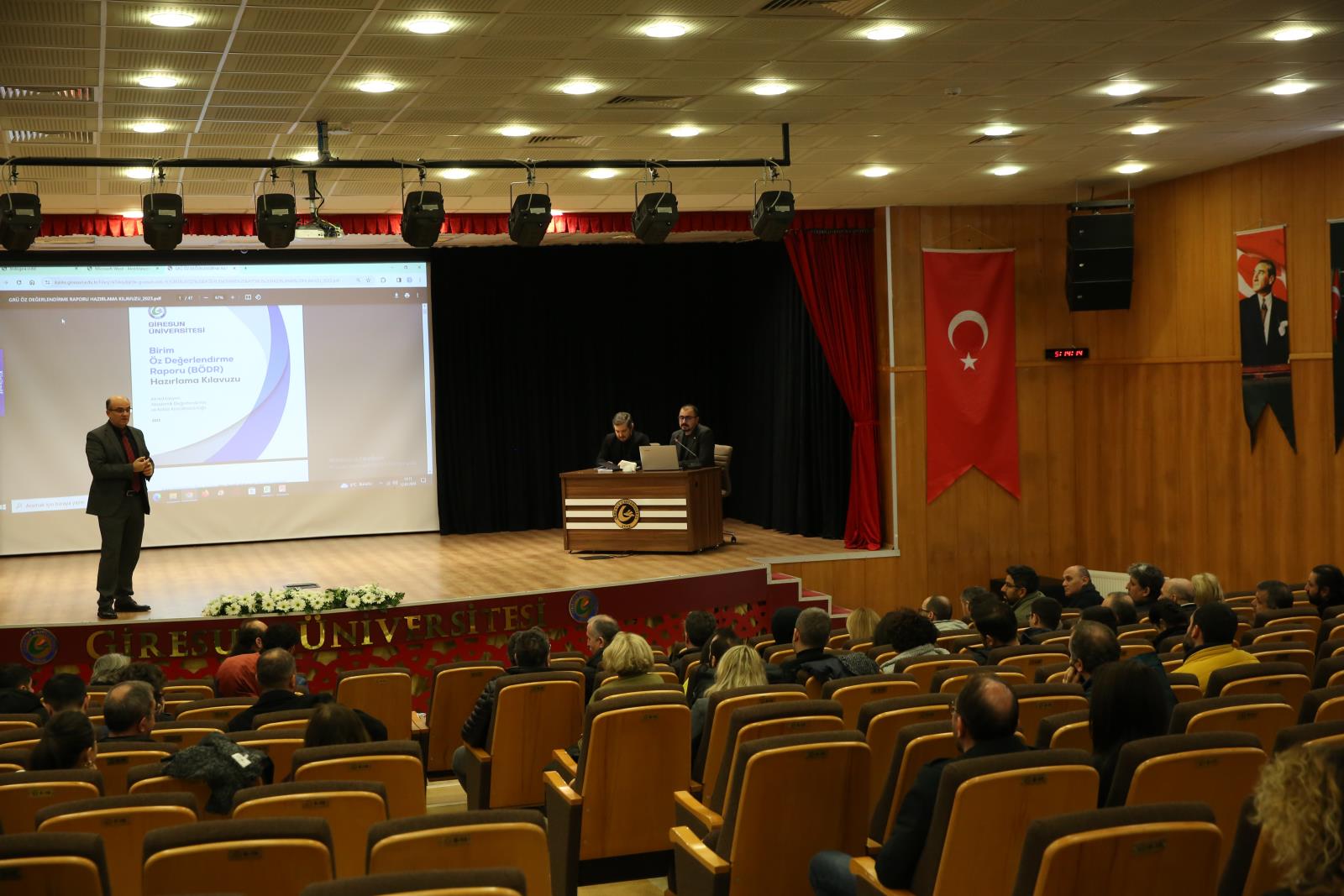 Kalite Koordinatörü Prof. Dr. Mustafa Şanal da yaptığı konuşmada, kalite ve akreditasyon açısından acil olarak atılması gereken adımlardan bahsederek, Bologna sürecine uyumun önemine dikkat çekti.