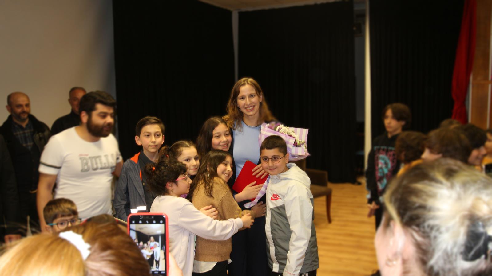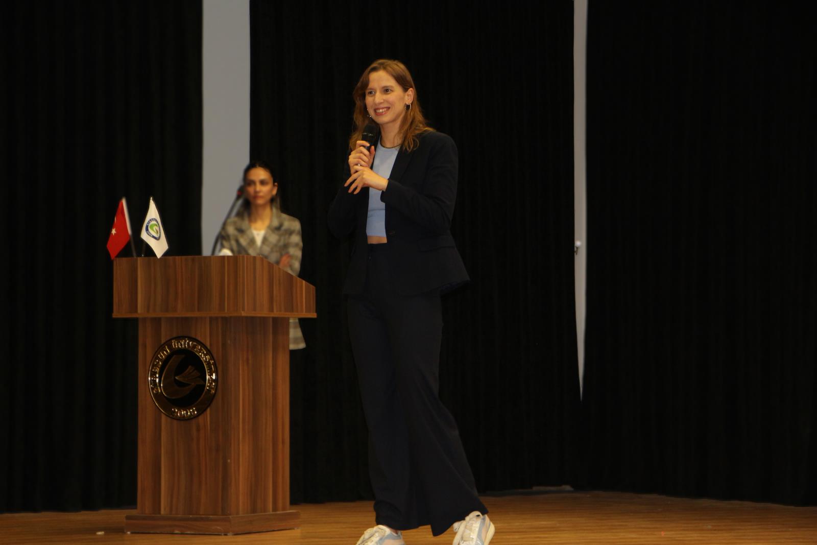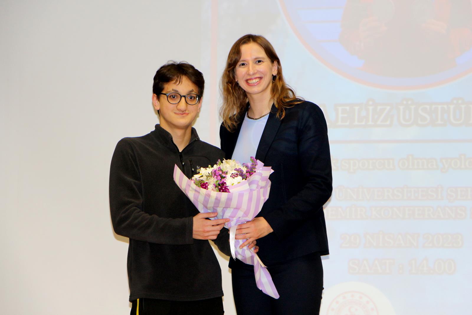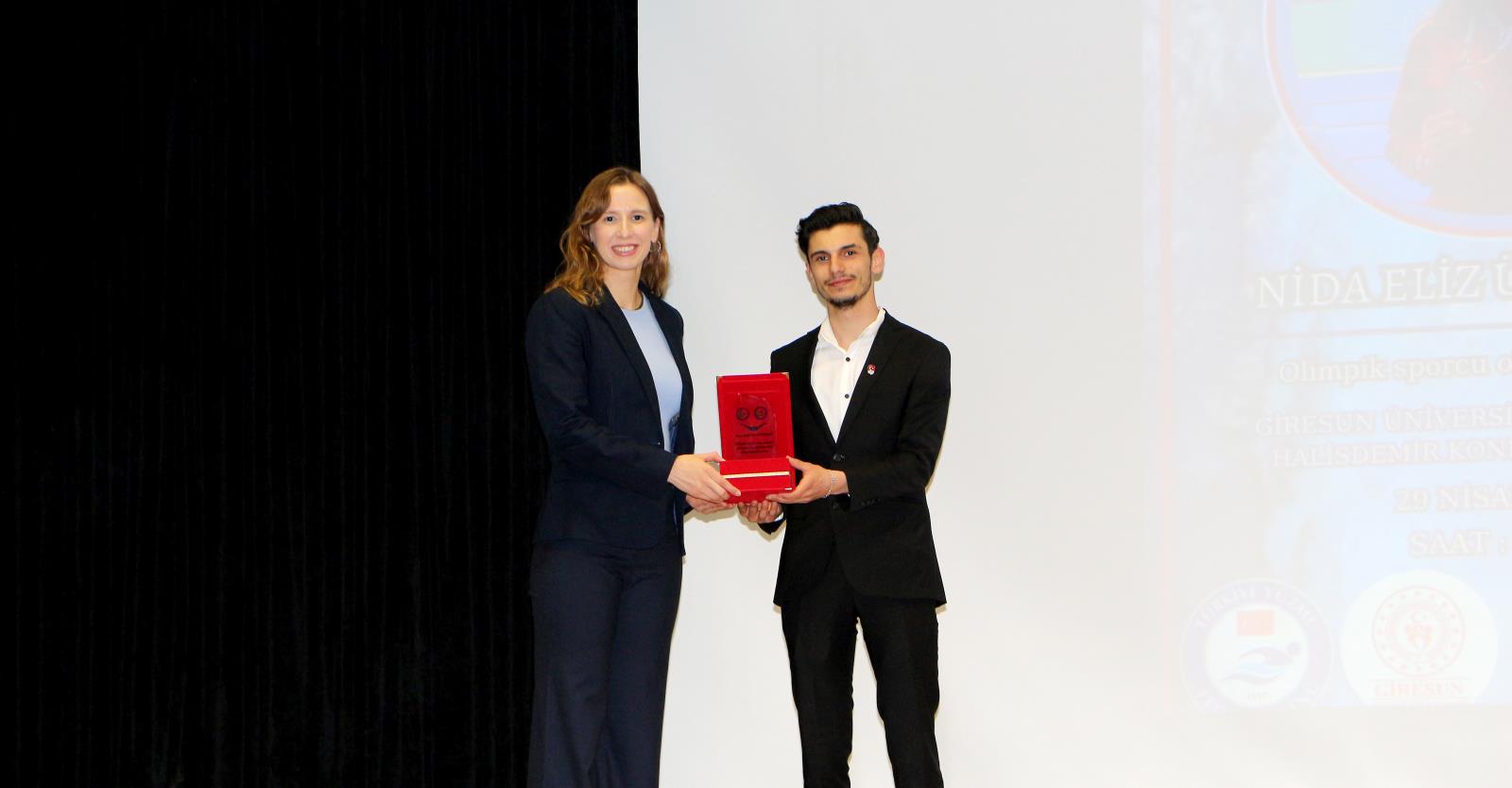 Gençlik ve Spor İl Müdürü V. Muzaffer Ergün ve Üniversitemiz Yüzme ve Su Sporları Topluluk başkanı Ufuk Erdoğan tarafından Milli Sporcuya plaket takdim edilirken, Türkiye Milli Olimpiyat Komitesi (TMOK) Boğaziçi Organizasyon Komitesi Üyesi ve Yüzme İl Temsilcisi Heves Bozbağ tarafından ilimiz Yüzme ve Sutopu Antrenörlerine teşekkür belgesi takdim edildi.