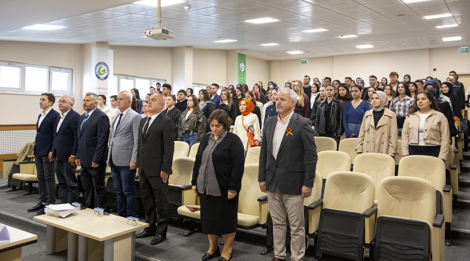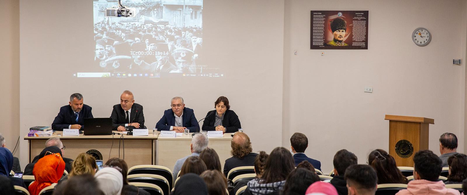 Son sunumu gerçekleştiren Fen Edebiyat Fakültesi Türk Dili ve Edebiyatı Bölümü öğretim üyesi Doç. Dr. Emine Bilgehan Türk ise, “Ziya Gökalp ve Kimlik İnşası” başlıklı bir sunum gerçekleştirdi. Prof. Dr. Türk konuşmasında, “Falih Rıfkı Atay “Bugünkü Türkiye nizamı Gökalp’sız izah edilemez” der. Türkiye nizamı ve Gökalp etkisini ele almaya çalışırsak önce dil bahsinden söz etmeliyiz. Ziya Gökalp 1910’da Selanik’te azalığı döneminde Ali Canip Yöntem’le sohbet esnasında Genç Kalemler dergisinden ve Yeni Lisan hareketinden söz ederler. Ziya Gökalp dil bahsinde Ömer Seyfettin’le aynı düşündüğünü belirtir. Bu hareketin odak noktası Milli bir kimlik için milli bir edebiyata milli bir edebiyat içinse milli bir lisana ihtiyaç vardır. Bunun için ne yapılmalıdır. Her iki isim de makalelerinde önce dilin durumu tespit eder. Ziya Gökalp, dil ve edebiyat bahsiyle birlikte Türkçülüğün bütün yönleriyle ele alınması gerektiği fikrindedir. Bunun için de şiir bir araçtır. Ziya Gökalp şiirleriyle bir bilinç oluşturmak ister. “Şiir devrinde şuur, şuur devrinde şiir susar.” sözüyle döneminde bir çok tartışmaya kapı aralasa da halkın bir arada olması, çalışması inanması için onu hep bir adım öteye taşıyacak mefkureye olan ihtiyacını da şiirle söyler. Türk toplumunun durumunu açıklıkla izah eden takip etmesi gereken yolu çizen Kızıl Elma şiirini yazar.” ifadelerine yer verdi.