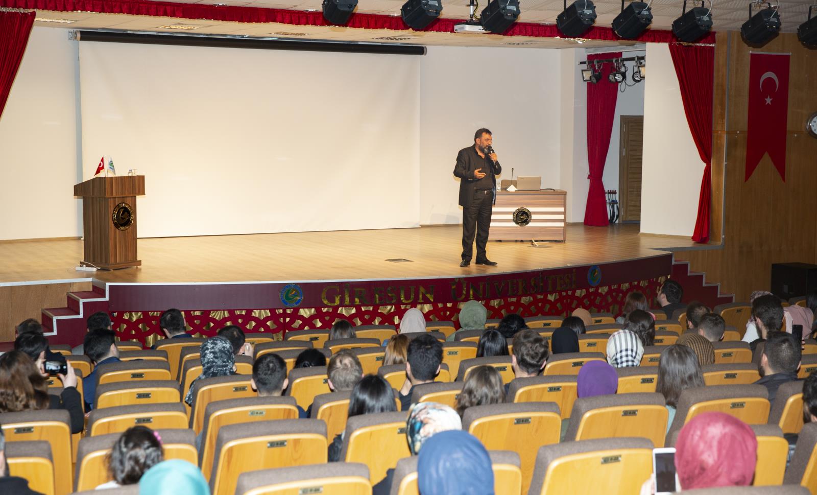 Program için Üniversitemize gelen, Muhsin Yazıcıoğlu’nun yakın arkadaşlarından tiyatro oyuncusu, şair ve yazar Ahmet Yenilmez, farklı kişiliğiyle Türk siyasetinde önemli yer edinen Yazıcıoğlu’nu kendi penceresinden anlattı.