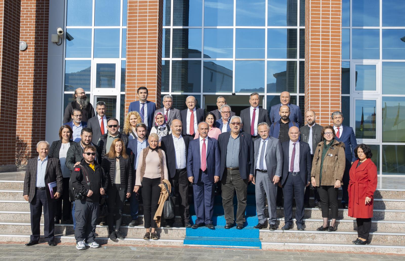 Üniversitemizin genel durumunun ve geleceğe dair atılacak adımların konuşulduğu toplantı sonunda, Rektörümüz ve basın mensupları Güre Yerleşkesinde incelemelerde bulundular. Rektörlük Binası önünde basın mensuplarıyla hatıra fotoğrafı çektiren Prof. Dr. Yılmaz Can, düzenlenen toplantıya katılımlarından ötürü gazetecilere teşekkür etti.