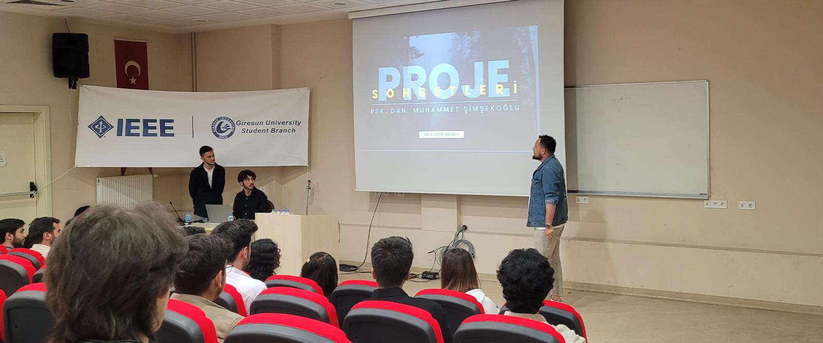 Proje geliştirme süreçleri ve başarılı projeler üzerine konuşmaların yapıldığı programda; Gençlik Merkezi GençKod ve Deneyap Koordinatörü Cahit Ensar TEMUR, Psikolojik Danışman Muhammet ŞİMŞEKOĞLU, Elektrik-Elektronik Mühendisliği yüksek lisans öğrencisi Sefa KURTOĞLU bilgilerini paylaştılar.