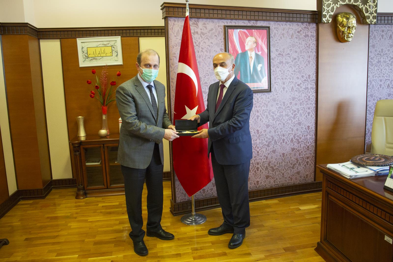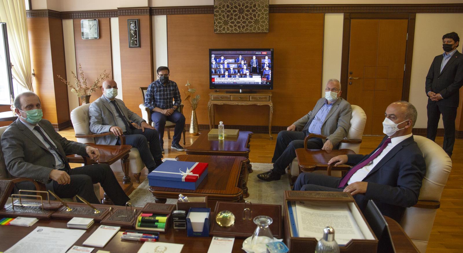 Güre yerleşkesindeki rektörlük makamında gerçekleşen ziyarette Rektör Yardımcılarımız Prof. Dr. Güven Özdem ve Prof. Dr. Hüseyin Peker'in yanı sıra Rektör Danışmanımız Dr. Öğr. Üyesi Rahim Kızgut da hazır bulundular.
