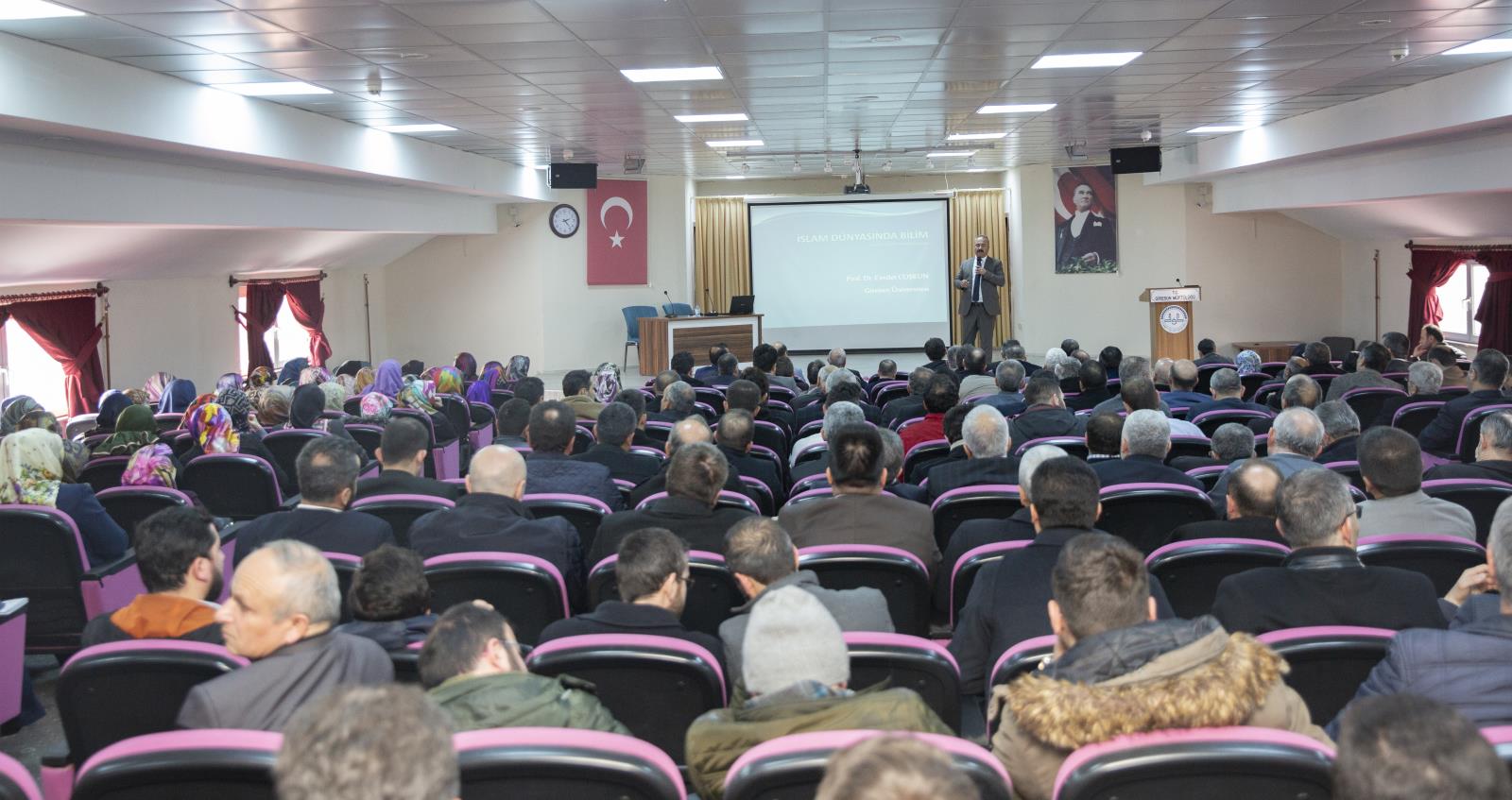 İslam dünyasında bilimin genel çerçevesine değinen Rektörümüz konuşmasında, batı ile doğu medeniyetlerinin İslam coğrafyasına etkilerine de yer verdi.