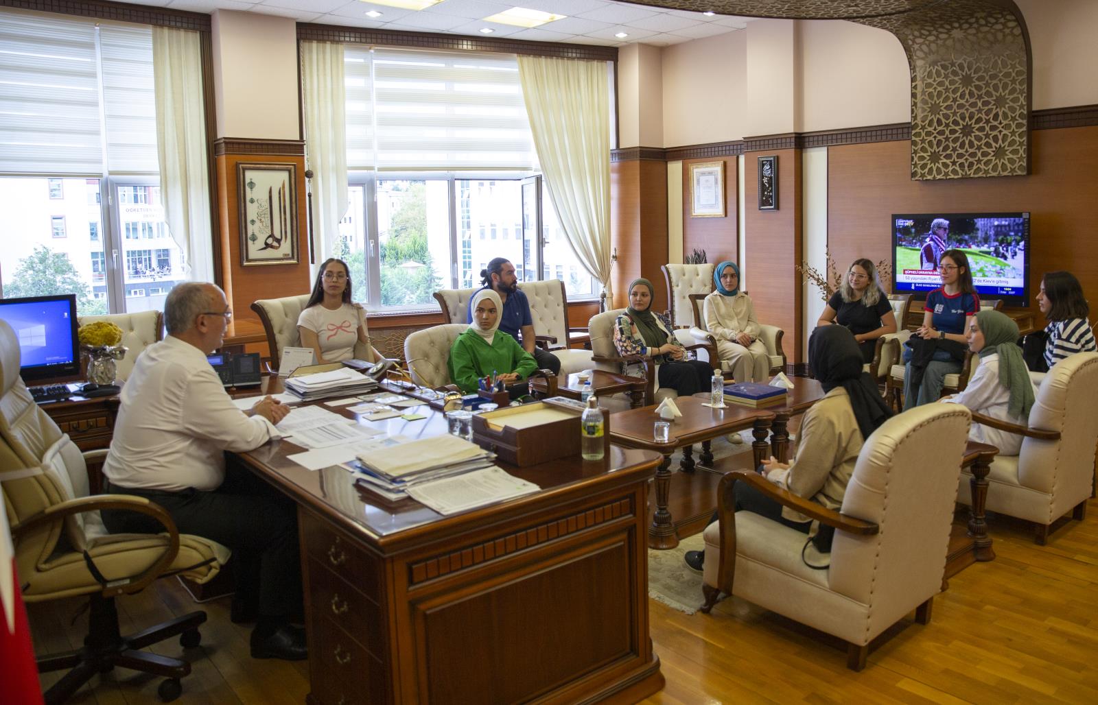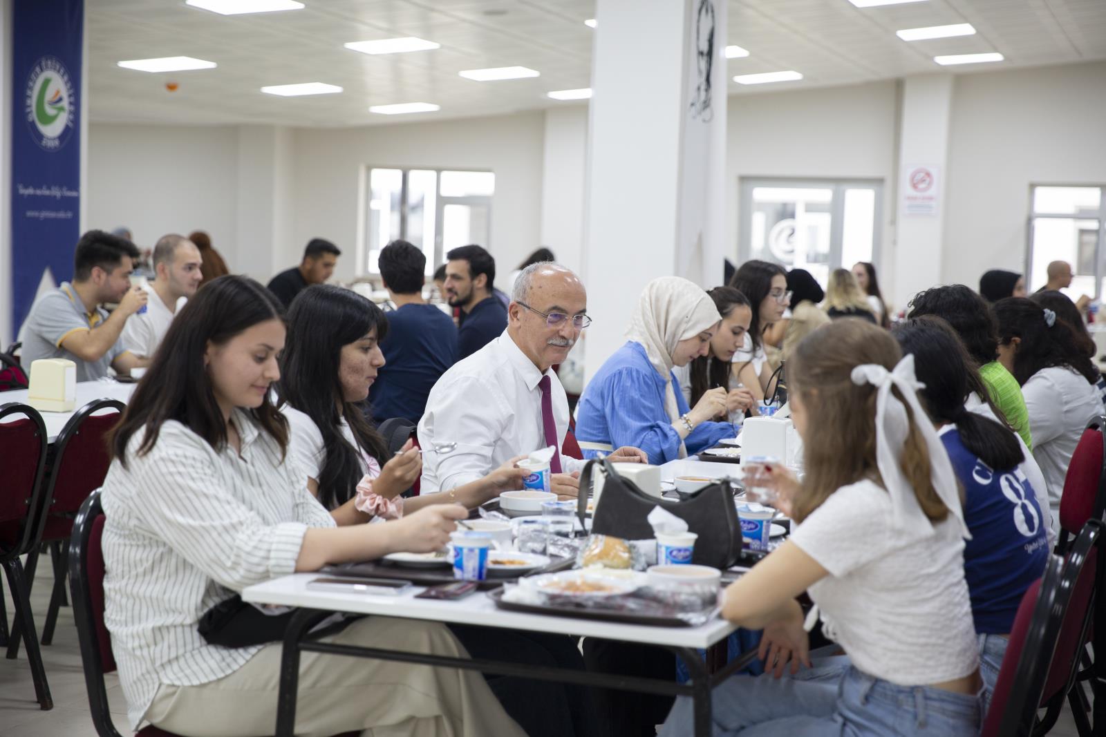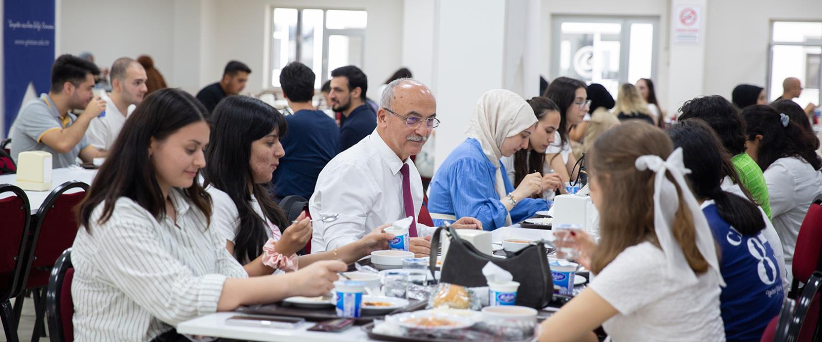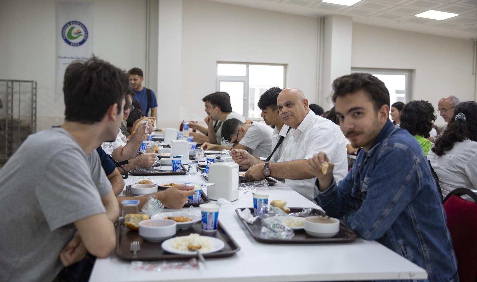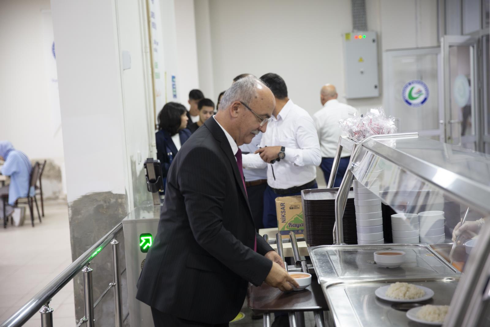 Rektör Yardımcılarımız Prof. Dr. Güven Özdem ve Prof. Dr. Hüseyin Şahin ile birlikte Güre Yerleşkesindeki öğrencilerle bir süre sohbet eden Rektörümüz Prof. Dr. Yılmaz Can, öğle yemeğini de öğrenci yemekhanesinde öğrencilerle birlikte yedi. Ardından öğrencileri makamında ağırlayan Rektörümüz Prof. Dr. Yılmaz Can, “Yönetim olarak kapımız sizlere sonuna kadar açık. Her konuda bizlere danışabilirsiniz. Her zaman yanınızdayız.” diyerek öğrencileri uğurladı.