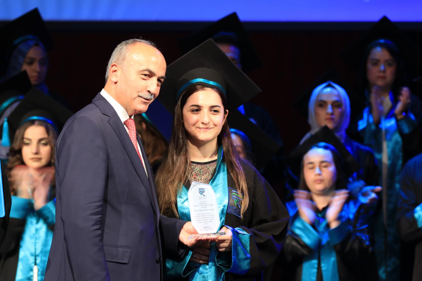 Recep Tayyip Erdoğan Üniversitesi Kongre ve Kültür Merkezi Konferans Salonunda düzenlenen törene Genel Sekreter Ahmet Tevfik Korkmaz ile birlikte katılan Rektörümüz, dereceye giren öğrencilere plaket ve hediyelerini takdim ettikten sonra onlarla hatıra fotoğrafı çektirdi.