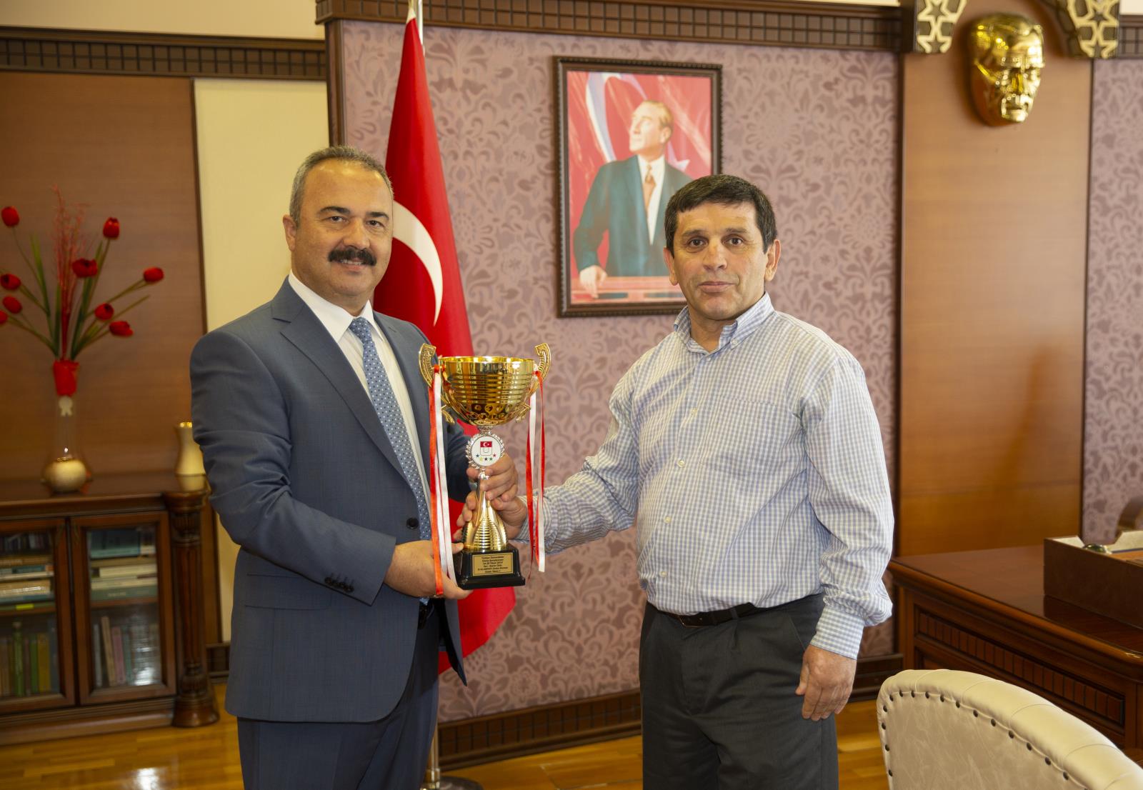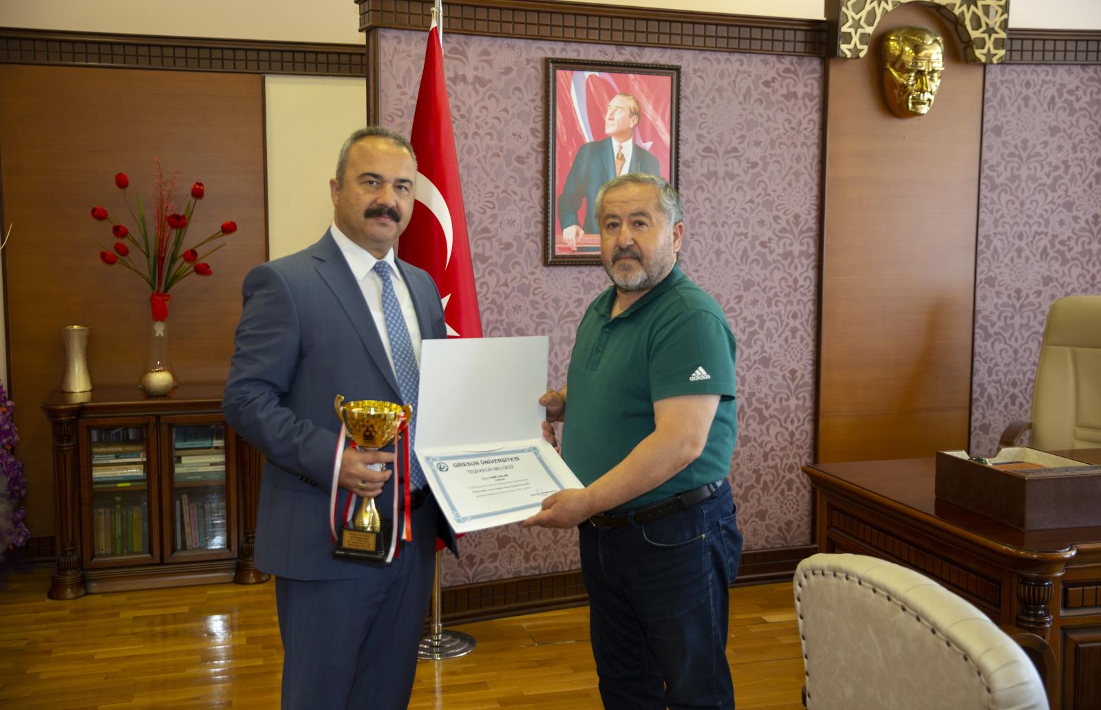 Takım antrenörleri Doç. Dr. Şevki Kolukısa ve Dr. Öğr. Üyesi Halil Çolak ile sporcuları, elde ettikleri başarıdan dolayı kutlayan Rektörümüz, Giresun Üniversitesinin adını farklı alanlarda başarıyla temsil eden ekip üyelerine teşekkür belgesi takdim etti.