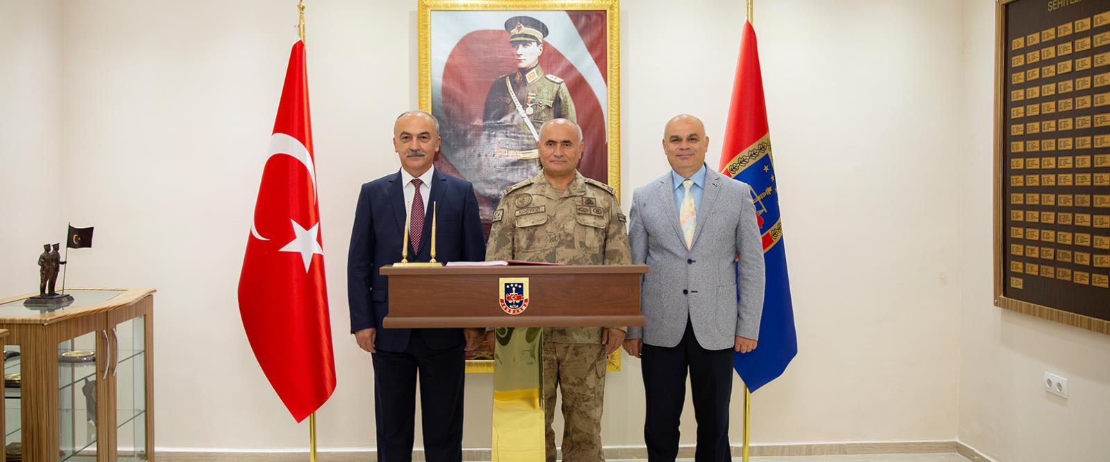 23 Ekim günü gerçekleşen ziyaret programı ise İl Jandarma Komutanlığı ile başladı. İl Jandarma Komutanı J. Alb. Muhammet Sevinç tarafından karşılanan Rektörümüz Prof. Dr. Yılmaz Can, günün anısına Birlik Ziyaret Defterini imzaladı. “Barış Pınarı Harekâtı” dolayısıyla sınır ötesinde görev yapan Mehmetçiği unutmayan Rektörümüz, başarılı operasyon dolayısıyla Türk Silahlı Kuvvetleri’ni en kalbi duygularla kutladığını ifade etti.