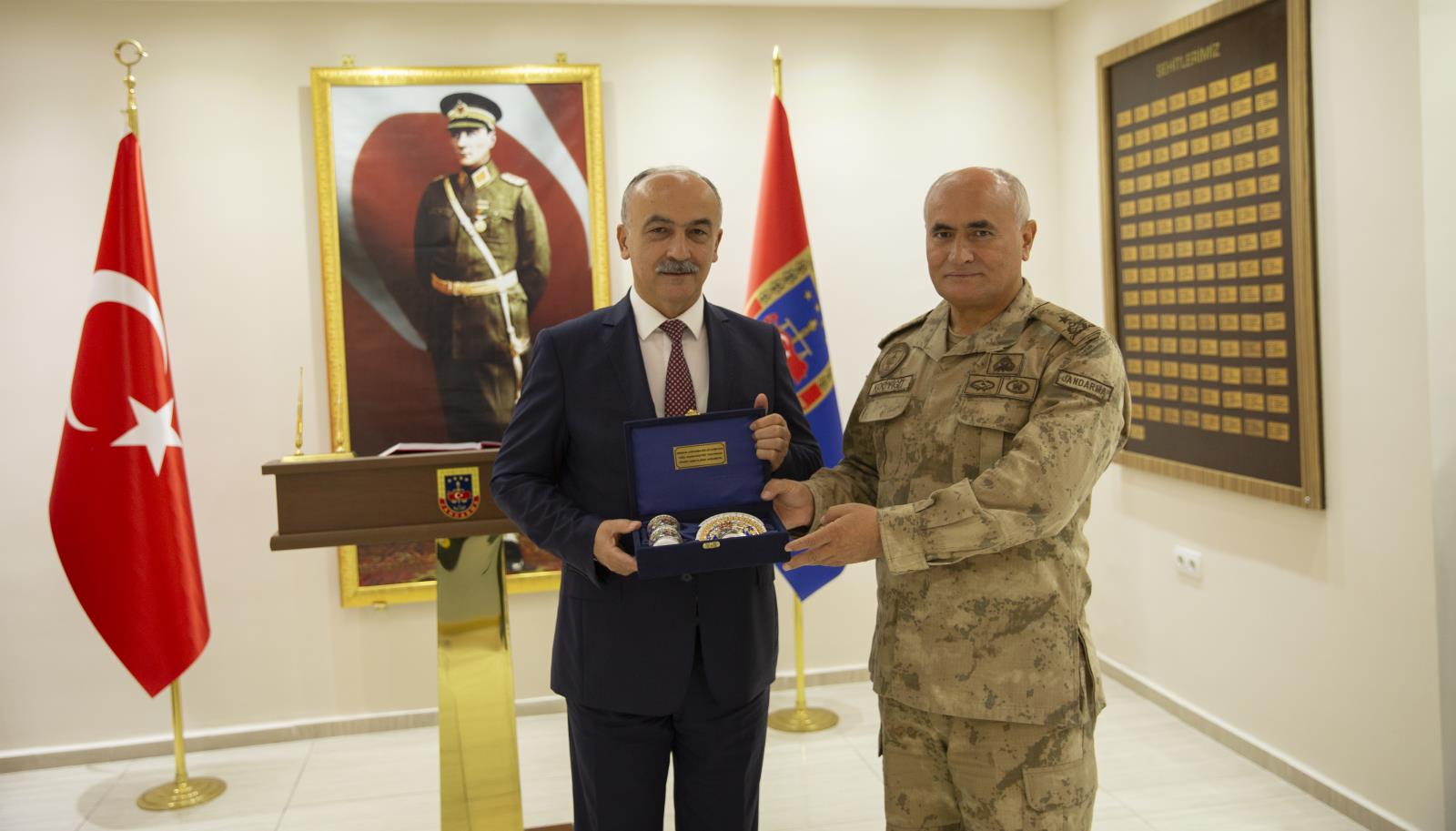 İl Jandarma Komutanı J. Alb. Muhammet Sevinç ile yaptığı görüşmenin ardından Jandarma Bölge Komutanlığına geçen Rektörümüz, burada da Jandarma Bölge Komutanı Tuğgeneral Hasan Koçyiğit ile bir araya geldi. Bölge Komutanlığı Ziyaret Defterini imzalayan Prof. Dr. Yılmaz Can, Barış Pınarı Harekâtı dolayısıyla Suriye’de operasyon düzenleyen Türk Silahlı Kuvvetleri adına Bölge Komutanını tebrik ederek askerlerimize muvaffakiyet diledi.