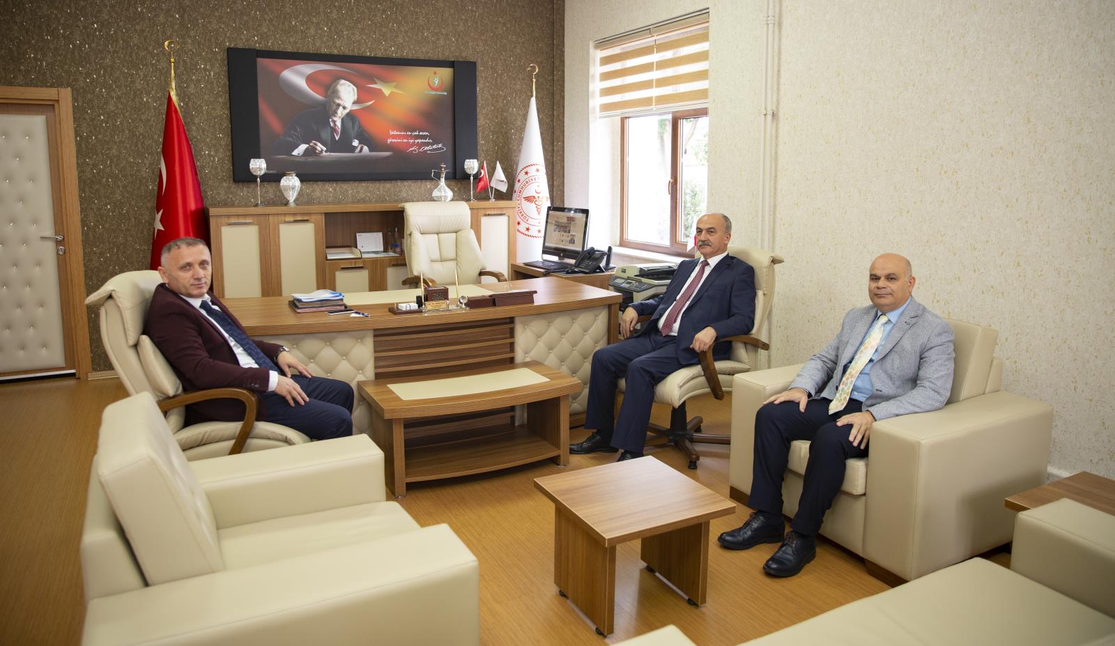 Tüm ziyaretlerde kendisine eşlik eden Rektör Yardımcısı Prof. Dr. Güven Özdem ile birlikte günün son ziyaretini İl Sağlık Müdürlüğüne yapan Rektörümüz Prof. Dr. Yılmaz Can, burada Müdür Op. Dr. Ahmet Bal ile bir görüşme gerçekleştirdi.