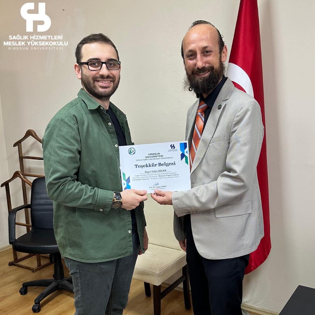 Toplantı sonunda, katkılarından dolayı dış paydaşlara teşekkür belgeleri takdim edildi. Sağlık Hizmetleri MYO, program akreditasyonu ve Bologna süreçlerinde paydaş katılımıyla ilerlemeyi sürdürüyor.