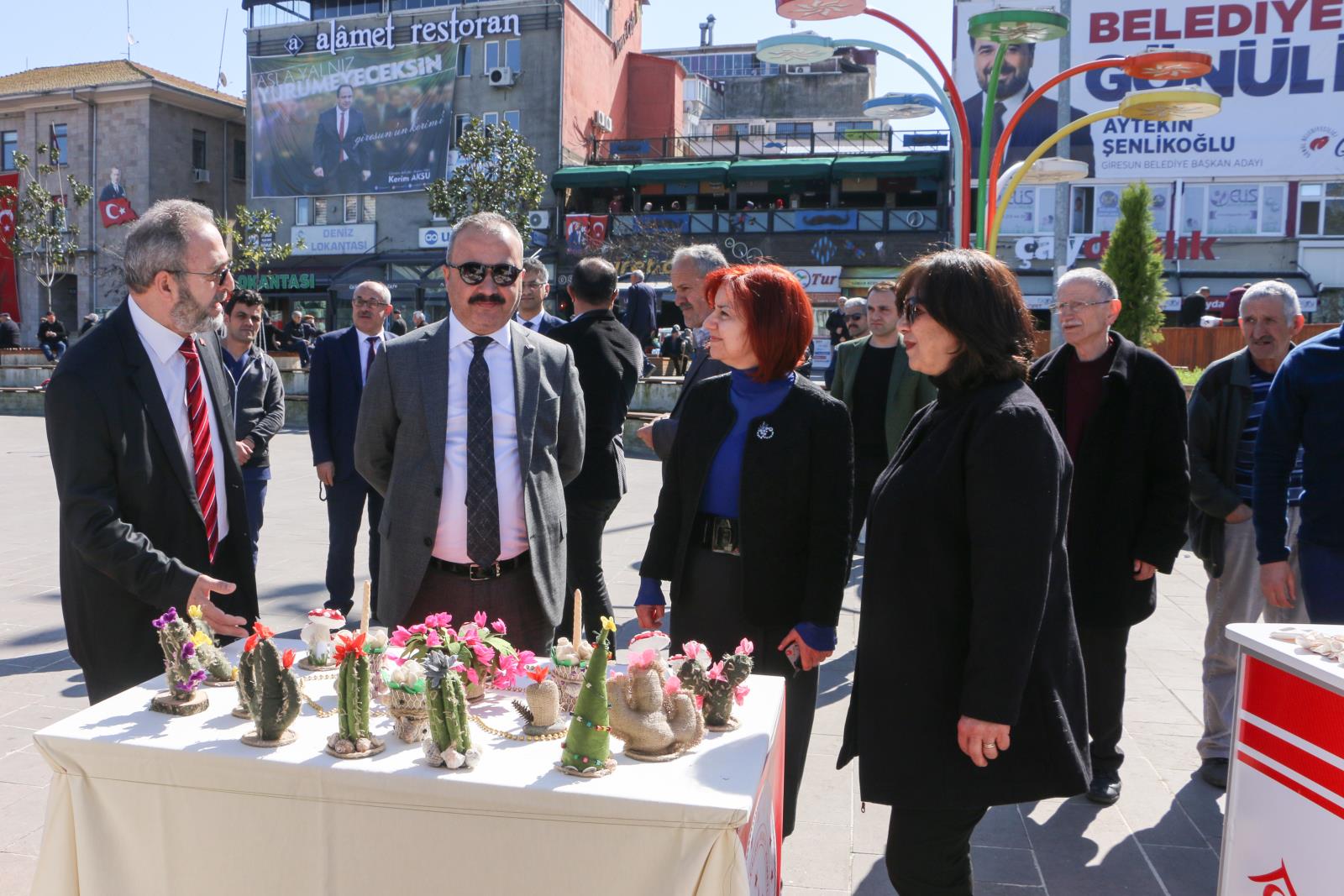 Tıp Fakültesi Dekanı Prof. Dr. Canan Çelik ile birlikte alana gelen Rektörümüz Prof. Dr. Cevdet Coşkun, ilk olarak Giresun Huzurevi Yaşlı Bakım ve Rehabilitasyon Merkezi sakinlerinin yaptıkları çalışmaların sergilendiği standı ziyaret etti. Merkezin el sanatları hocası Melike Topuz’dan ortaya konan eserler hakkında bilgi alan Rektörümüz, daha sonra Sağlık Hizmetleri MYO çadırına geçti. Tansiyonunu ve kan şekeri değerlerini ölçtüren Rektörümüz Prof. Dr. Cevdet Coşkun, öğrencileri ve Öğr. Gör. Ayça Toprak’ı yaptıkları bu anlamlı çalışma için tebrik etti.
