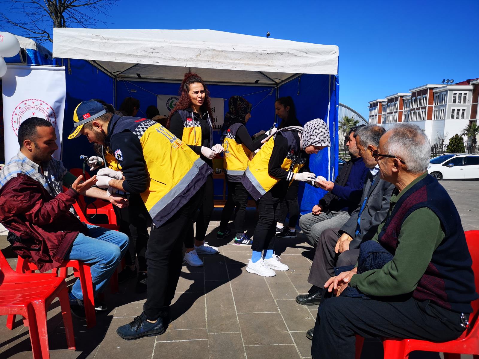 Aile ve Sosyal Politikalar İl Müdürlüğü ile birlikte düzenlenen etkinlik kapsamında Sağlık Hizmetleri MYO Yaşlı Bakım Programında Öğr. Gör. Ayça Toprak danışmanlığında, Atatürk Meydanında kurulan sağlık çadırında görev alan İlk ve Acil Yardım Programı 2. sınıf 2. öğretim öğrencileri, çadırı ziyaret eden vatandaşların tansiyonlarını ve kan şekeri değerlerini ölçtüler.