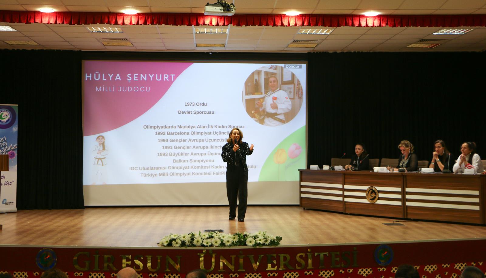 Organizasyon Komitesi Başkanı Prof. Dr. Aysun Türkmen'in yönettiği "Sporda Kadın" temalı bu oturumda panelist olarak, milli sporcularımız, Dünya Halter Şampiyonu Cansu Bektaş, kadınlarda ilk olimpiyat madalyasının sahibi Hülya Şenyurt, FİFA kokartlı hakem Mürvet Yavuztürk ile Tekvando Babaannesi lakaplı Avrupa Şampiyonu Sevgican Yalçın yer aldılar.