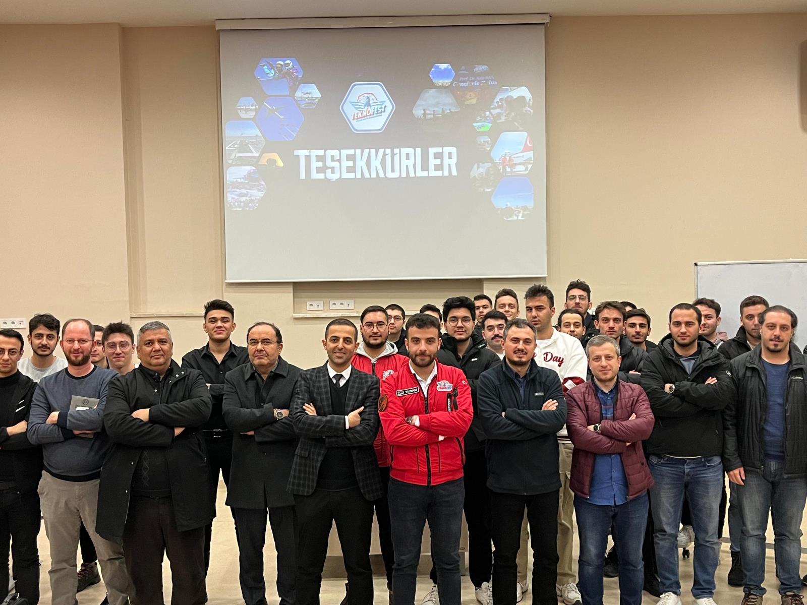 Üniversitemiz Mühendislik Fakültesi Harezmi amfisinde gercekleştirilen sunuma Rektör Yardımcımız Prof. Dr. Hüseyin Şahin'in yanı sıra akademik personelimiz ve öğrencilerimiz katıldı. Fatih Yıldırım, milli teknoloji hamlesinin önemini vurgulayarak, kurum olarak yürüttükleri projeler hakkında bilgi verdi. Ayrıca, TEKNOFEST 2024 özeline ayrı bir başlık açarak etkinliğe nasıl başvurulur, yarışmalar ve içerikleri hakkında öğrencilerimizi bilgilendirdi.