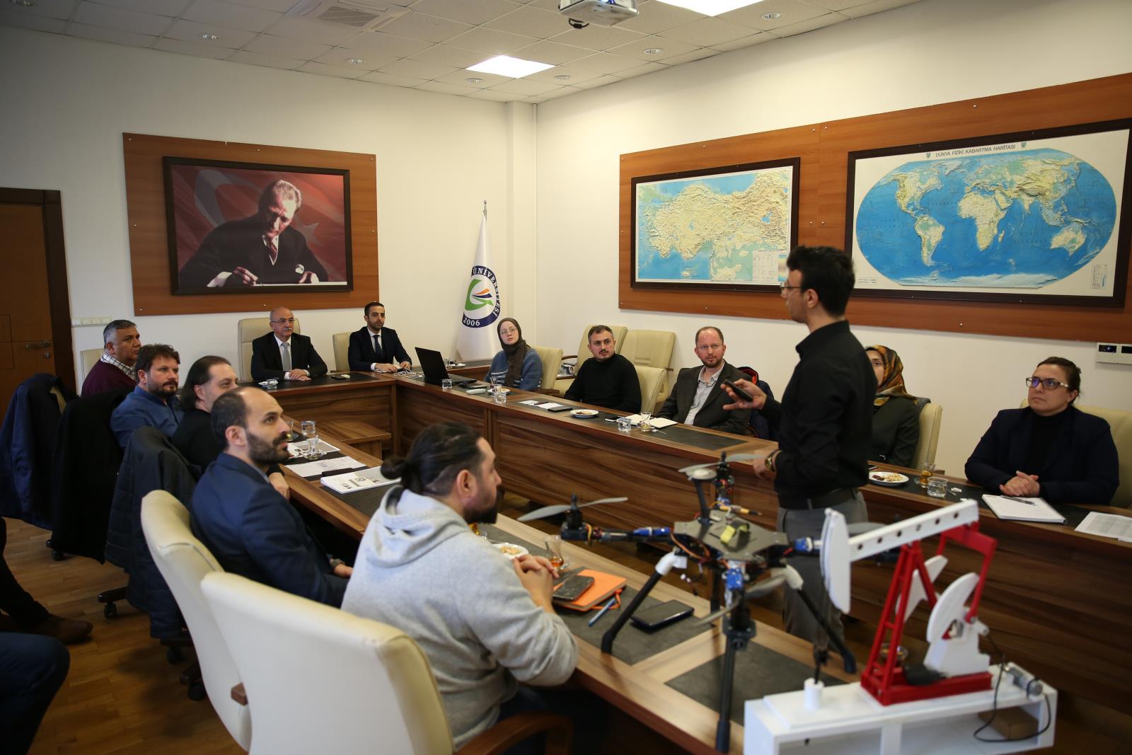 Rektörümüz Prof. Dr. Yılmaz Can başkanlığında gerçekleşen toplantıya, Rektör Yardımcımız Prof. Dr. Hüseyin Şahin, Giresun TEKNOPARK Genel Müdürü Dr. Öğretim Üyesi Muhammet Anıl Kaya, Mühendislik Fakültesi ve Fındık İhtisaslaşma Koordinatörlüğünden öğretim elemanları ile proje geliştiren öğrenciler katıldı.