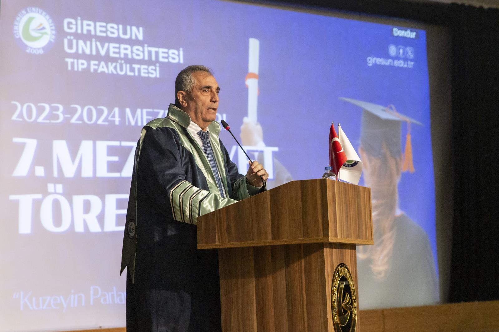 Törende söz alan Tıp Fakültesi Dekanı Prof. Dr. Erdal Ağar, konuşmasında Tıp Fakültesi’nin 6 yılının büyük özveri gerektirdiğini, ancak mezunlarımızın bundan sonraki hayatlarında da bilgilerini güncel tutabilmeleri için sürekli çalışmaları ve kendilerini yenilemeleri gerektiğini; her bir mezunumuzun kendi özelliklerini iyi tanıyıp mutlu olabilecekleri uzmanlık dalları seçmeleri gerektiğini vurguladı.