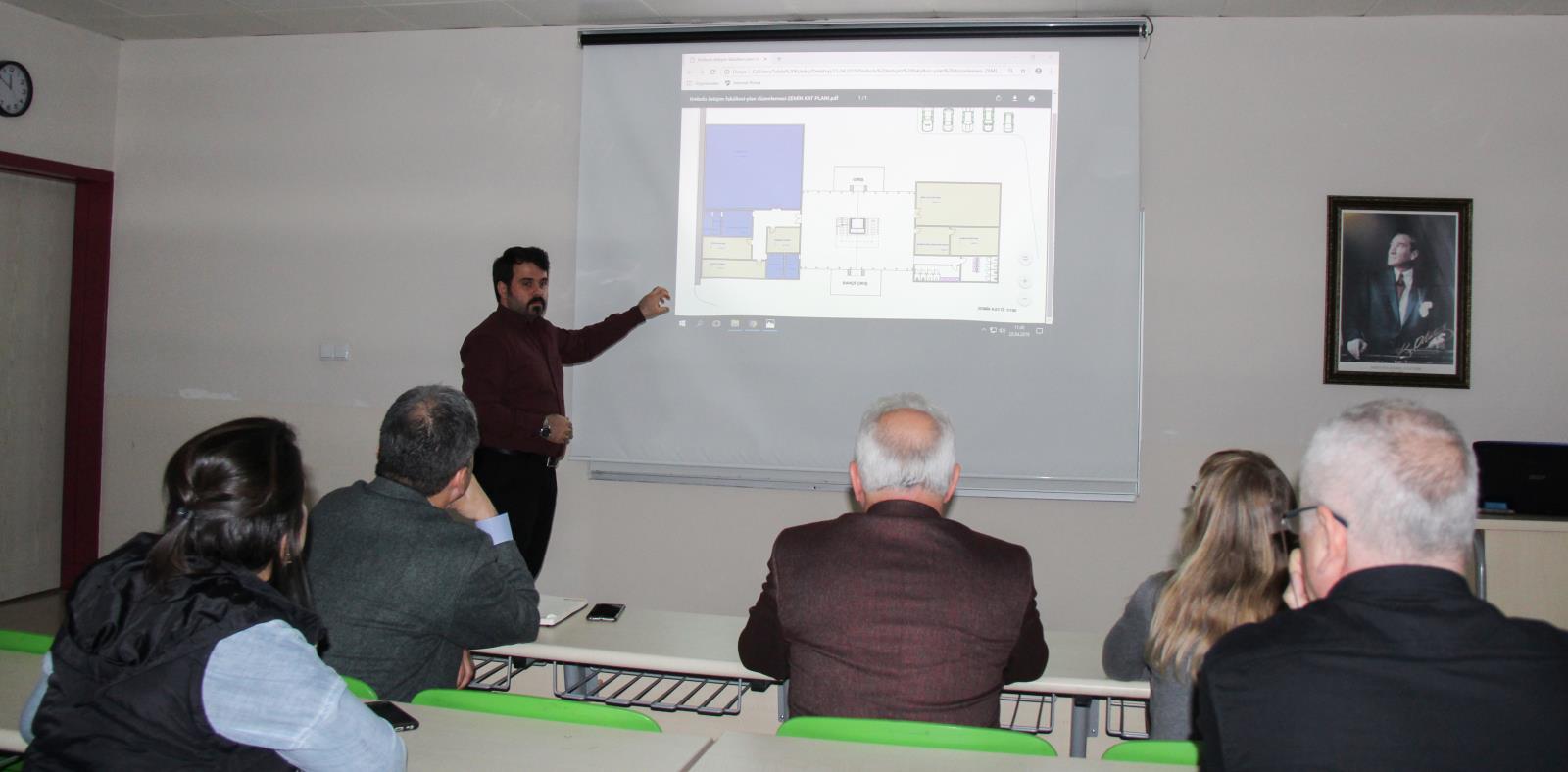 Yapılması planlanan ek bina ve bu bina içinde yer alacak stüdyolar için çizilen mimari proje tanıtım toplantısı yapıldı. Toplantıda; Mimar Hüseyin Keskin tarafından yapılan sunumda, binanın içerisinde yer alması planlanan film atölyesi, televizyon stüdyoları, konferans salonu ve diğer fiziki yapısı ile ilgili bilgi paylaşımında bulunuldu ve bundan sonraki aşamada izlenecek yol haritası belirlendi.