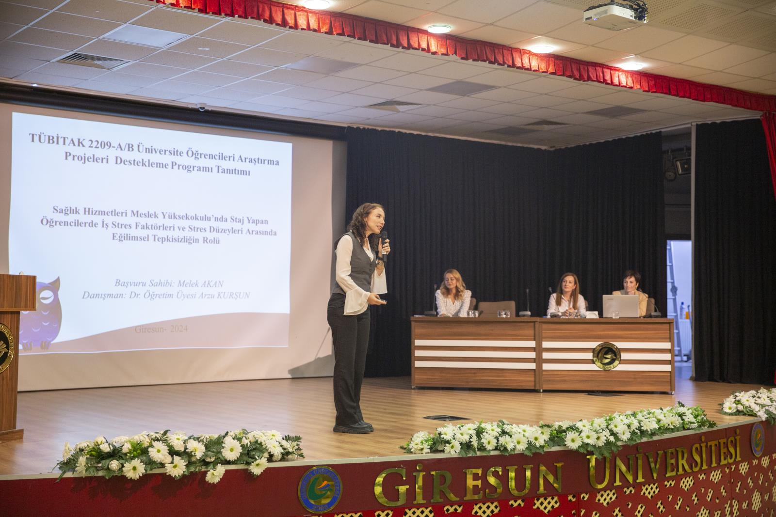Rektör Yardımcımız Prof. Dr. Hüseyin Şahin ise konuşmasında Giresun Üniversitesi olarak öğrenci projelerini önemsediklerinden bahsetti. Gerek ön lisans gerekse de lisans öğrencilerine proje kültürü kazandırmak amacıyla düzenlenen bu minvalde programların son derece önemli olduğunu belirterek emeği geçenlere teşekkür etti.