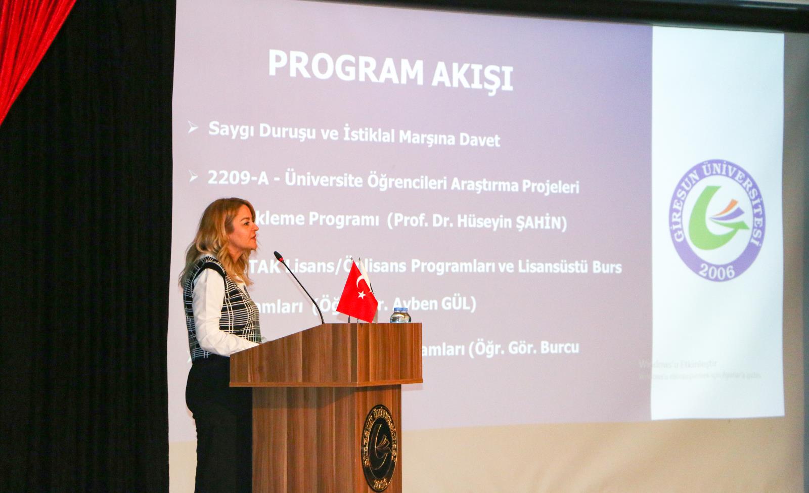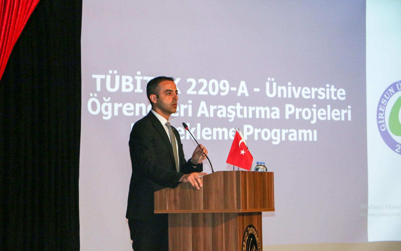 Etkinliğin açılış konuşmasını yapan Prof. Dr. Hüseyin ŞAHİN, Giresun Üniversitesi öğrencileri arasında TÜBİTAK desteklerinin ve proje kültürünün artırılmasına katkı sunmayı amaçladıklarını belirterek, bu kapsamda ilk olarak İlahiyat Fakültesi öğrencilerine yönelik olan bu programı gerçekleştirdiklerini ifade etti. Diğer fakülteleri için de benzer programlar yapmayı planladıklarını dile getiren Sayın ŞAHİN konuşmasının devamında TÜBİTAK 2209-A - Üniversite Öğrencileri Araştırma Projeleri Destekleme Programı hakkında bir sunum yaptı.