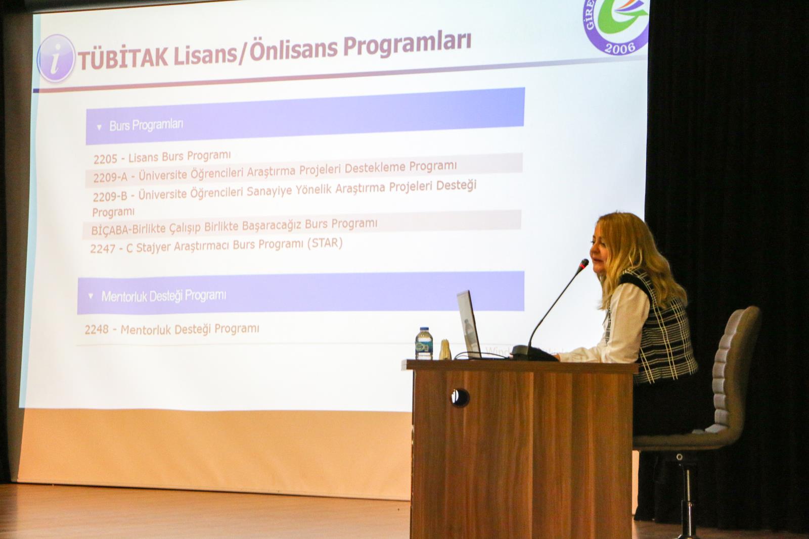 Etkinliğin devamında ise Proje Destek ve Yönetim Koordinatörlüğünden öğretim görevlileri Ayben GÜL ve Burcu AKKAYA Lisans ve Lisansüstü öğrencileri ile doktora sonrası araştırmacılara yönelik TÜBİTAK’ın sağlamış olduğu eğitim ve araştırma bursları hakkında bilgi verdiler.