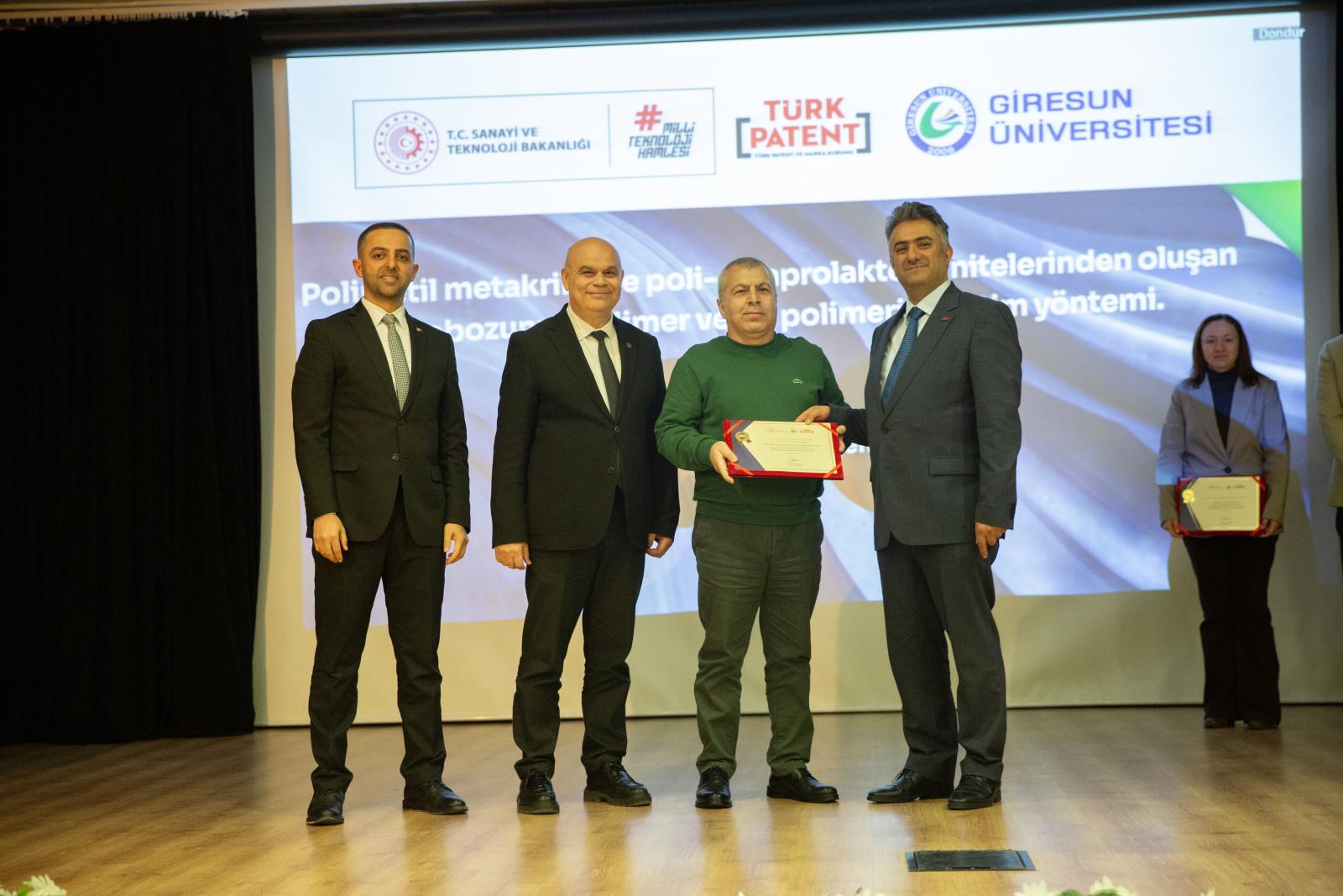 Etkinlik kapsamında; 2023-2025 yılları arasında patent tescili alan ve başvurusu bulunan akademisyenler için bir belge takdim töreni düzenlendi. Törende, patent tescili alan Prof. Dr. Tayfun ARSLAN, Öğr. Gör. Esra Özbek MERCAN ve Elif Nur BÜYÜKKAYA ile patent başvuru süreçleri devam eden Doç. Dr. Faruk GÜNER, Doç. Dr. Ümmü Gülsüm DURUKAN, Prof. Dr. Temel ÖZTÜRK ve Gözde Şenay DEMİR'e teşekkür belgeleri takdim edildi.