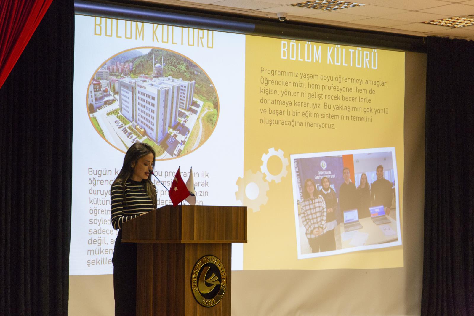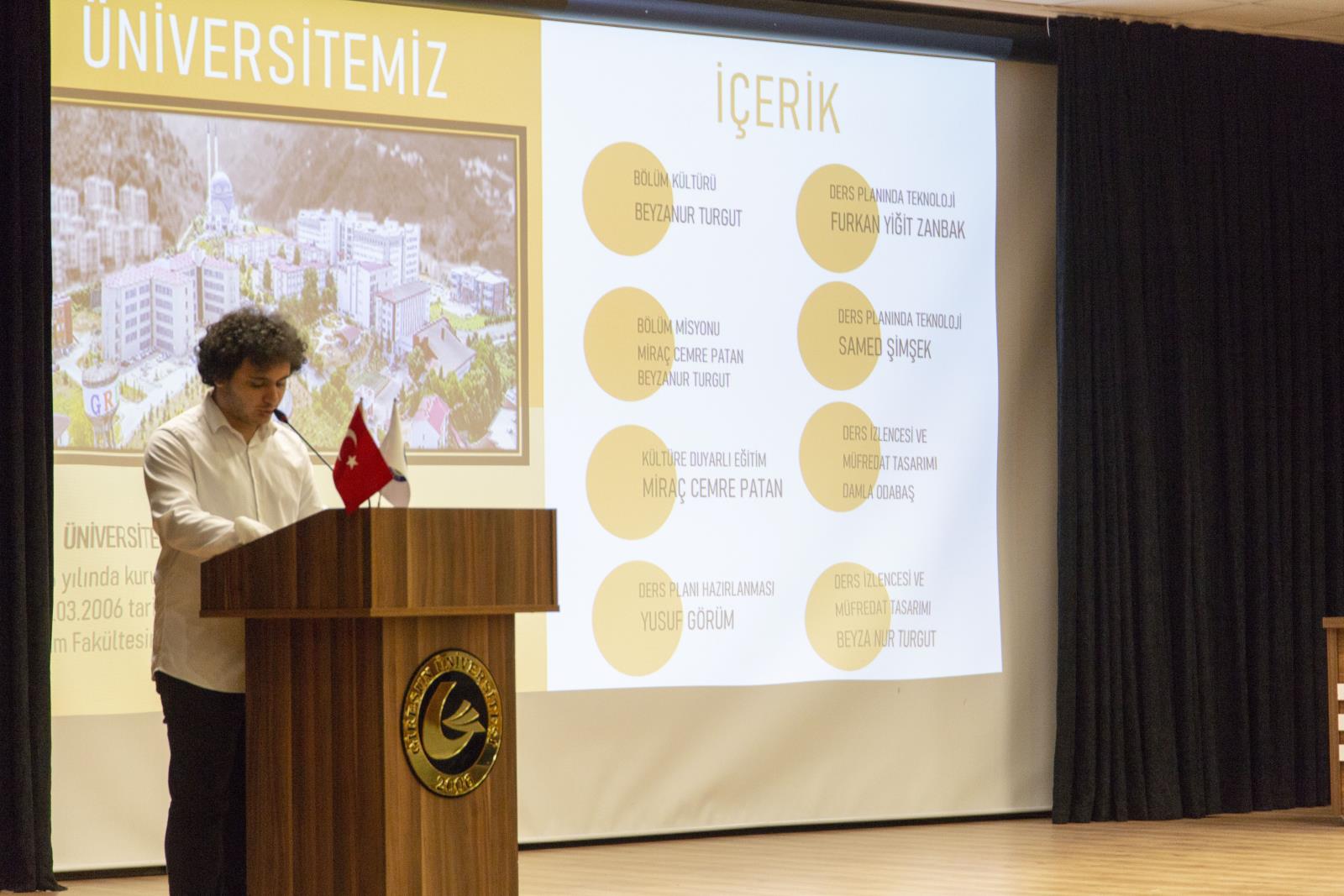 Şehit Ömer Halisdemir konferans salonunda gerçekleşen etkinliğin açılış konusmasını Rektör Yardımcımız ve Eğitim Fakültesi Dekanı Prof. Dr. Güven Özdem yaptı. Akabinde, Bölüm Başkanı Dr. Melissa Özlem Grab oryantasyon programının giriş konuşması yaptı.