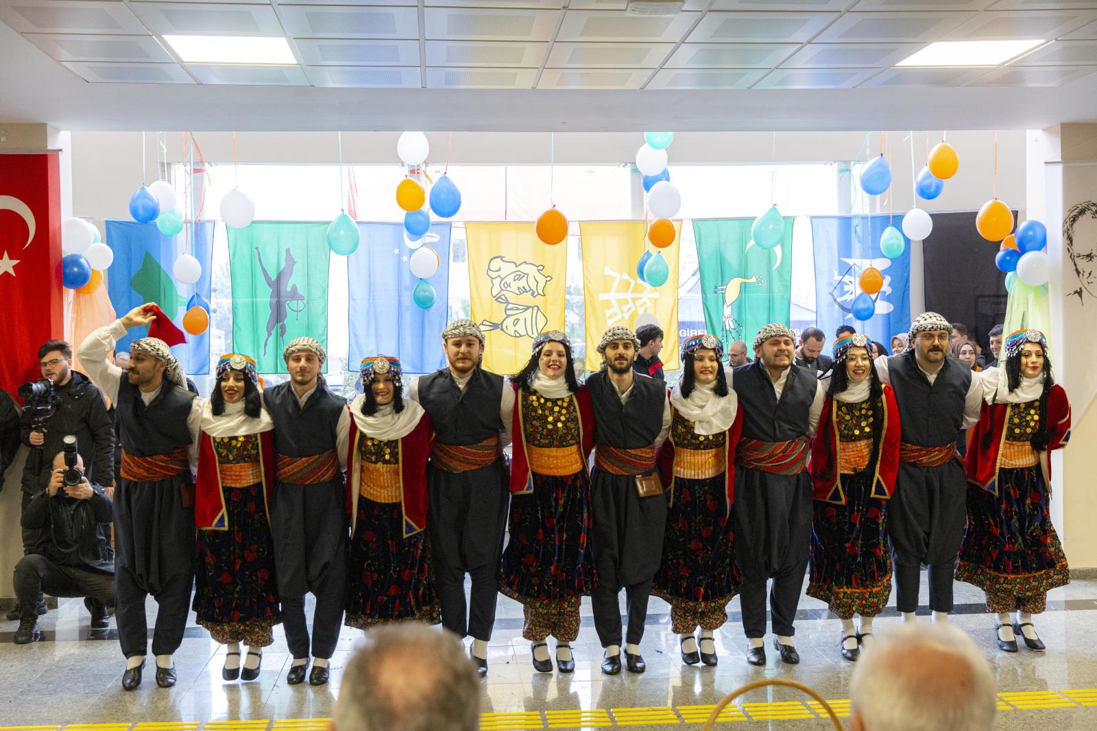 Fen Edebiyat Fakültesi giriş katta gerçekleştirilen etkinlik karşılama töreninin ardından, saygı duruşu ve İstiklal Marşı’mızın okunmasıyla başladı. Devamında ise Devlet Konservatuarı ve TÖMER öğrencileri tarafından yöresel halk oyunları gösterisi gerçekleştirildi. Renkli kıyafetleri ve enerjik danslarıyla öğrencilerimiz izleyicilere keyifli dakikalar yaşattı.