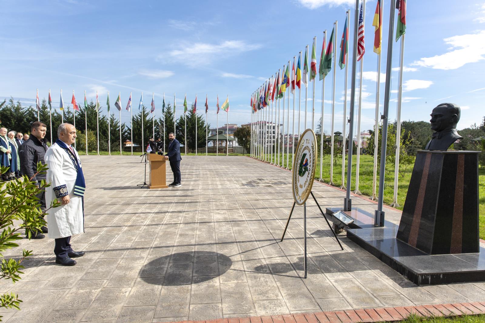 Rektörümüz Prof. Dr. Yılmaz Can'ın anıta çelenk sunması, saygı duruşu ve İstiklal Marşı'nın okunması ile devam eden törende bir konuşma yapan Rektörümüz, deprem afeti sebebiyle kuruluş yıldönümü kutlamalarını yapmayacaklarını hatırlattı ve; "Ülkemizin bir bölümü elem ve üzüntü içinde iken, bizim onların duygularının dışında hareket etmemiz mümkün değildir. Hep birlikte ağlayacağız, hep birlikte güleceğiz... Bu yara hepimizin yarası... Birlikte saracağız, birlikte atlatacağız" diyerek, depremde hayatını kaybedenlere Allah'tan rahmet diledi.