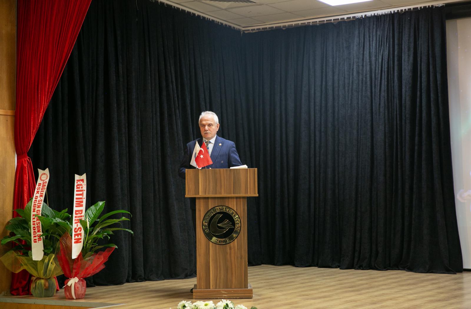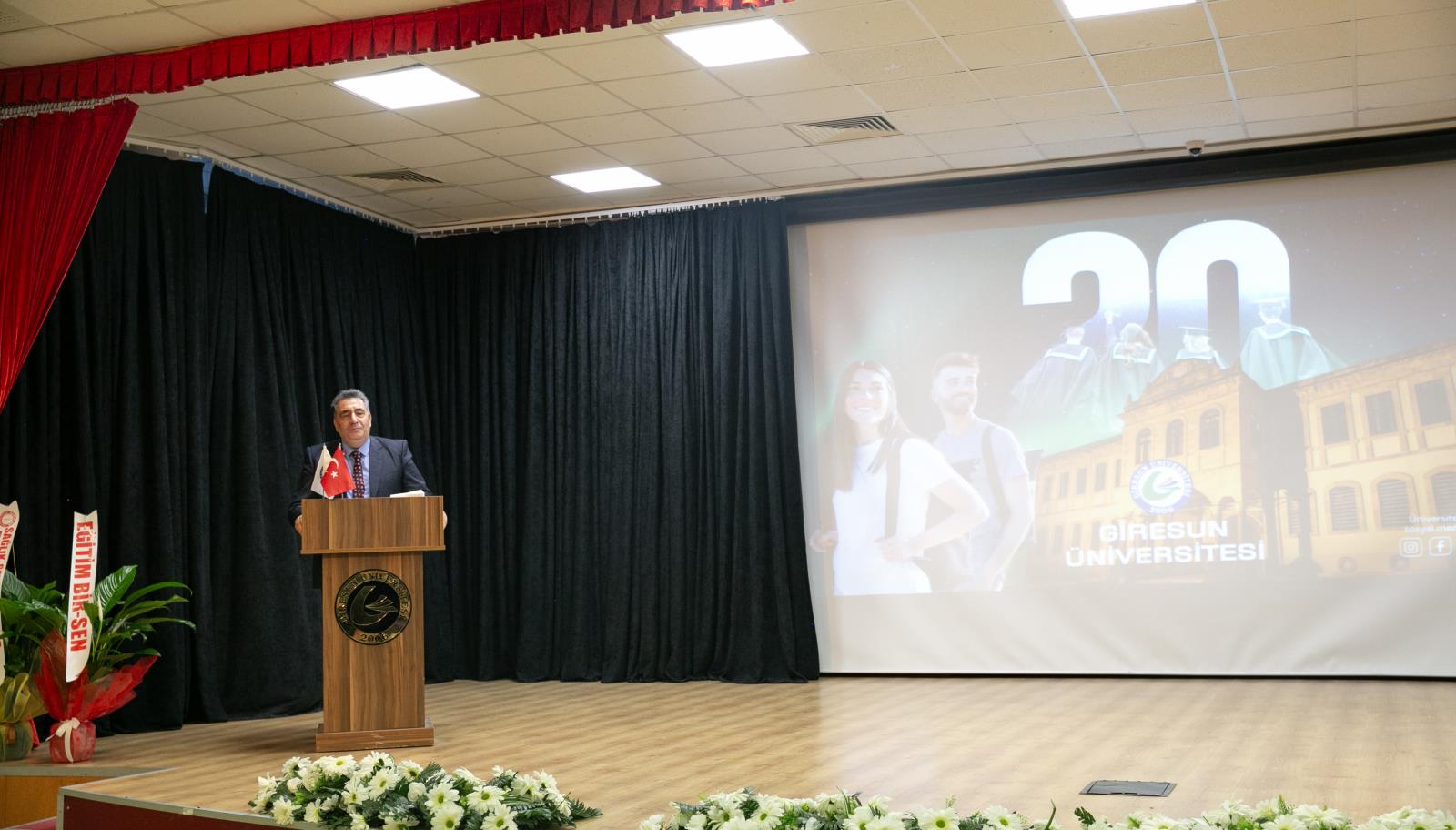 Üniversitemizin 20. kuruluş yıldönümü sebebiyle törende ilk konuşmayı Rektörümüz Prof. Dr. Yılmaz Can yaptı. Üniversitemizin son yirmi yıldaki gelişimi ve önemli faaliyetleri hakkında bilgi veren Rektörümüz yeni ve gelecek dönemler için planlanan bir dizi akademik çalışma hakkında da bazı açıklamalarda bulundu. Rektörümüz, Üniversitemizin YÖK tarafından "fındık" temalı üniversite ilan edilmesinin ardından bugüne kadar yürütülen çalışmalar ile devam eden ve planlanan diğer çalışmalarla ilgili olarak da önemli hususlara değindi. TEKNOFEST başta olmak üzere önemli bilimsel ve akademik platformlarda Üniversitemizin elde ettiği başarılara da değinen Rektörümüz, kuruluşundan bugüne Üniversitemize katkılarda bulunmuş herkese ayrı ayrı teşekkür etti.