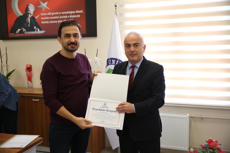 Üniversitemiz adına gerçekleştirdikleri üstün nitelikli ulusal ve uluslararası bilimsel çalışmalarından dolayı Fakültemizin Biyoloji Bölümü öğretim elamanları Prof. Dr. Emine YALÇIN, Prof. Dr. Kültiğin ÇAVUŞOĞLU ve Kimya Bölümü öğretim elemanı Prof. Dr. Temel ÖZTÜRK'e ''Hizmet Ödülü''; Biyoloji Bölümü öğretim elamanı Prof. Dr. A. Yalçın TEPE, Matematik Bölümü öğretim elemanı Prof. Dr. İmdat İŞCAN ve İstatistik Bölümü öğretim elemanı Prof. Dr. Erol EĞRİOĞLU‘na ''Teşekkür Belgesi'' 12.05.2023 tarihinde Fakültemiz Dekanı Prof. Dr. Beyhan KESİK tarafından takdim edilmiştir.