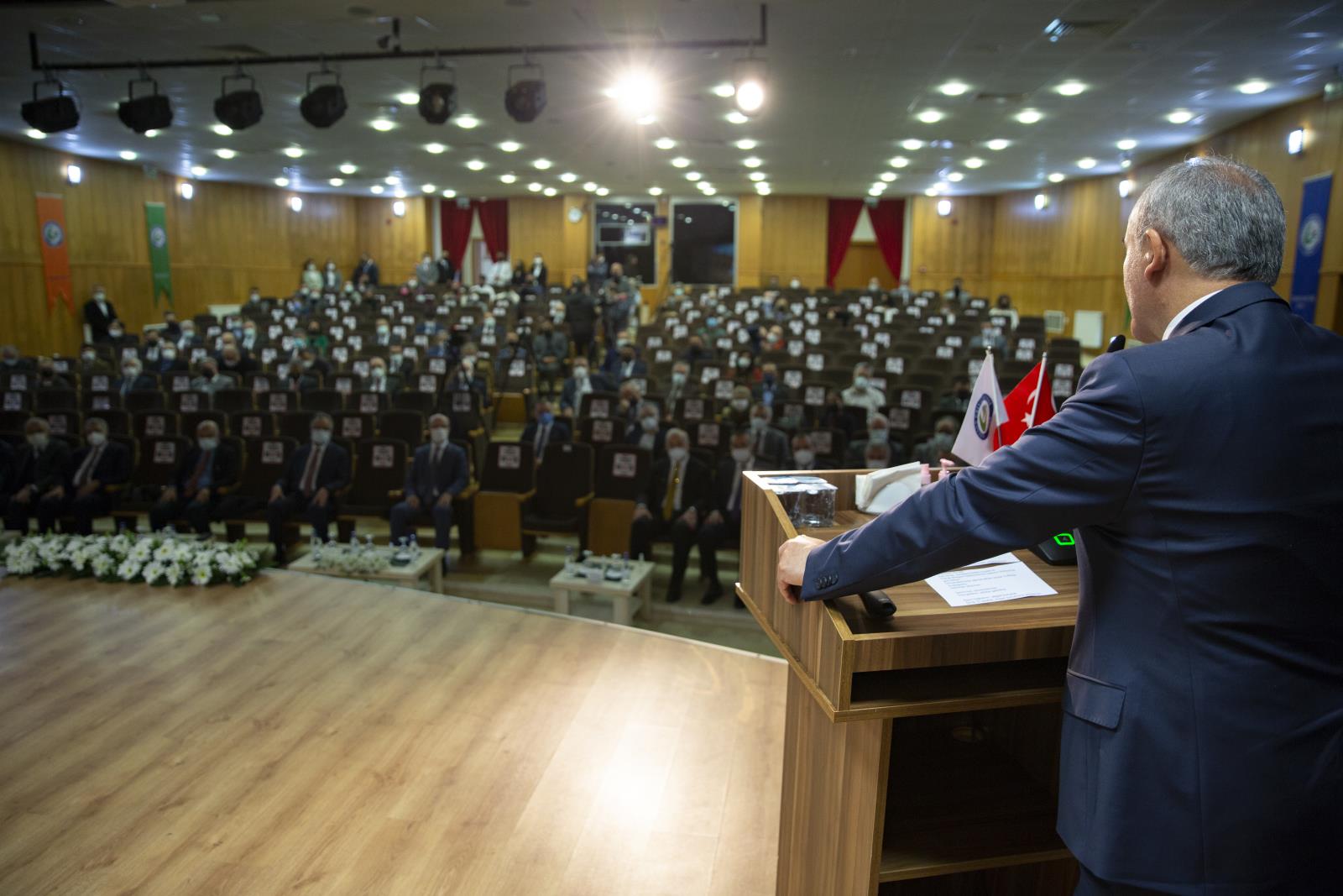 Rektörümüzden sonra kürsüye çıkan YÖK Başkanı Prof. Dr. Erol Özvar, sözlerine DOKAP Bölgesi Üniversiteler Birliğinin olağan toplantısında bulunmaktan dolayı fevkalade mutlu ve memnun olduğunu belirterek başladı. Özvar devamında, "Üniversite birlikleri yükseköğretim kurumlarının misyonları çerçevesinde güçlerini birleştiren önemli oluşumlardır. Bu oluşumlar iş birliği ve başarılı uygulama örneklerinin paylaşım yoluyla üyelerinin eğitim öğretim kalitesini ve araştırma kapasitelerini arttırmakla kalmıyor, aynı zamanda ulusal ve uluslararası rekabette başarılı olmaları için benzersiz fırsatlar sunuyor. Bununla birlikte herhangi bir akademik birliği sadece üyeleri için fırsat ve avantaj üreten bir platform olarak anlamakta doğru olmayacaktır. Bu birlikler aynı zamanda en az bu imkanlar kadar üyelerinin sorunlarına ortak bir akıl ve gayretle çözümler arayan teşekküllerdir. Bu birlikler eğitim öğretim ve araştırma, geliştirme gibi birincil faaliyetlerin yanı sıra bulunduğu ilin ve bölgenin doğal, ekonomik, ticari, sanayi ve sosyal potansiyelinin etkin kullanılması yerel ekonomik hayatın geliştirilmesine katkı sağlanması bölgenin ihtiyaç duyduğu insan kaynağının yetiştirilmesi bakımından önemi işlevler üstlenmişlerdir. Doğu Karadeniz Projesi Bölge İdaresi DOKAP bütçe ve proje imkanları açısından Doğu Karadeniz yöresinde büyük bir kurum ve önemli bir kaynak sunucusudur. Bugün toplanmamıza vesile olan Doğu Karadeniz Kalkınma Projesi Bölge Kalkınma İdarisine ve Doğu Karadeniz Üniversiteler Birliği üyelerine Giresun Üniversitemizin dönem başkanlığı süresi boyunca bu birliğin önemli katkılar sağlamasını, bölgenin ve şehirlerimizin gelişmesinde önemli roller oynamasını temenni ediyorum. Bu açıdan DOKAP gerçekten önemli bir projedir. Bu projelerinin içerisinde üniversitelerimizin üstleneceği roller bölgenin kalkınmasına doğrudan önemli bir katkı sağlayacağına inanıyorum. Hâlihazırda on beş üniversitemiz ile faaliyetlerini sürdüren Doğu Karadeniz Üniversiteler Birliğinin önümüzdeki yıllarda sadece bölgenin kalkınmasını değil aynı zamanda da Türk yüksek öğretim hayatına da bir nitelik kazandıracağı inancını da sizlerle paylaşmak isterim. Bünyesinde misyonel kalkınma planı yürüten üniversitelerimizin de bulunduğu bu birlik kuracağı tam bir işbirliği ve dayanışma ile üyelerine hiç şüphe yok ki nispi rekabet gücü kazandıracak bir potansiyele sahiptir. Yükseköğretim kurulu olarak yükseköğretimin eğitim, öğretim, araştırma ve topluma hizmeti kapsayan bütün süreçlerinde, değerli arkadaşlarım kalite, çeşitlilik, farklılık ve bölgesel gelişme odaklı bir planlama anlayışını ve yaklaşımını fevkalade önemsiyoruz. Üniversitelerimizin misyon farklılaşması odaklı ihtisaslaşmasına yönelik çalışmalarımızı da bu kapsamda değerlendiriyor ve bu alandaki faaliyetlerimizi üniversitelerimiz ve tüm paydaşlarımızla birlikte bundan sonra da güçlendirerek devam ettirmeyi düşünüyoruz. Bu konudaki azimli duruşumuzu ve kararlılığımızı da sizlerle paylaşmak isterim. Bölgesel kalkınma olarak misyon farklılaşması ihtisaslaşma programı kapsamında mevcutlara sizlerin de bildiği gibi geçtiğimiz birkaç gün evvelinde yedi üniversitemizi de dahil ederek yirmi iki üniversitemize bölgesel kalkınma odaklı misyon yüklemiş olduk. Yükseköğretim kurulunun yeni vizyonuna göre üniversitelerin istihdama sağlayacağı katkı başkanlığımızın izleyeceği önemli performans kriterlerinden birisi olacaktır. Ulusal ve uluslararası iş gücü piyasasını takip eden ve kendi mezunlarının istihdamını izleyen üniversite yönetim anlayışının hâkim kılınmasının önceleyeceğimizi buradan bir kez daha ifade etmek isterim. Burada istihdama katkı sağlamaktan kastımız üniversitelerimizin elbette mezunlarımızın iş bulması anlamına gelmemektedir. Üniversitelerin istihdama katkısı yetiştirdiği öğrencilere daha fazla bilgi daha faza beceri ve daha fazla yetkinlik kazandırmak suretiyle iş gücü piyasalarında mezunlarına rekabet üstünlüğü veya gücü kazandırmaktır." dedi.